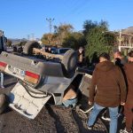 Adana’da Kozan-Kadirli yolunda hatalı sollama yaptığı iddia edilen otomobilin takla atması sonucu meydana gelen kazada 2 kişi ağır yaralandı. Kaza anı güvenlik kamerasına yansıdı.