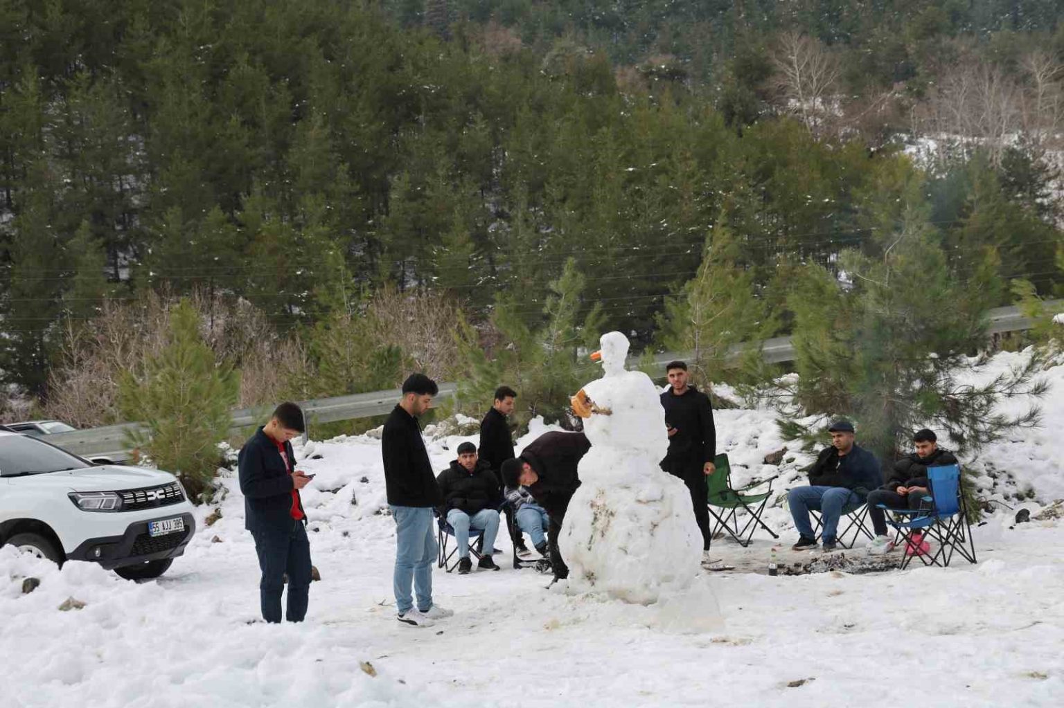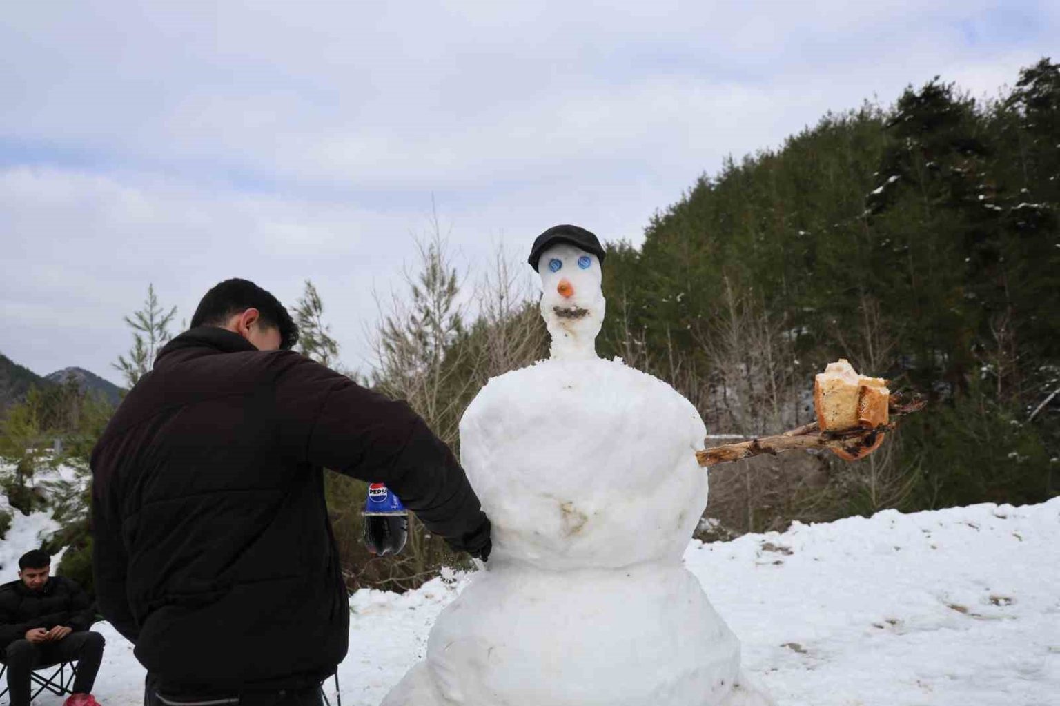 Kar yağışını fırsat bilen vatandaşlar, hafta sonunu aileleriyle birlikte kar topu oynayarak ve kardan adam yaparak geçirdi. Bölgenin dron ile çekilen görüntülerinde kızılçam ormanlarının üzerini kaplayan beyaz örtü, seyredenleri mest etti. Kardan adama sucuk ekmek ve şalgam ikram ederek eğlenceli anlar yaşayan Bayram Alparslan, “Uzun süredir bölgemize kar yağmıyordu. Burada çok eğlendik. Kardan adamımıza sucuk ekmek verdik, şalgam içirdik. Sucuk ekmek yiyip şalgam içen tek kardan adam Adana’da” dedi.
