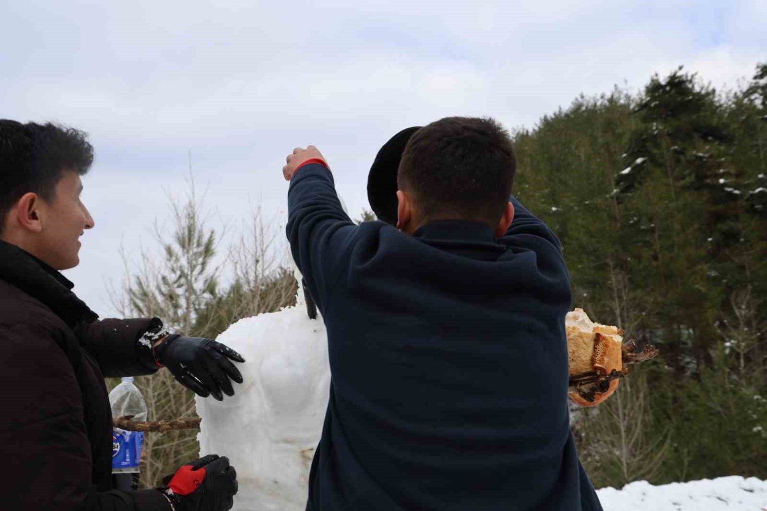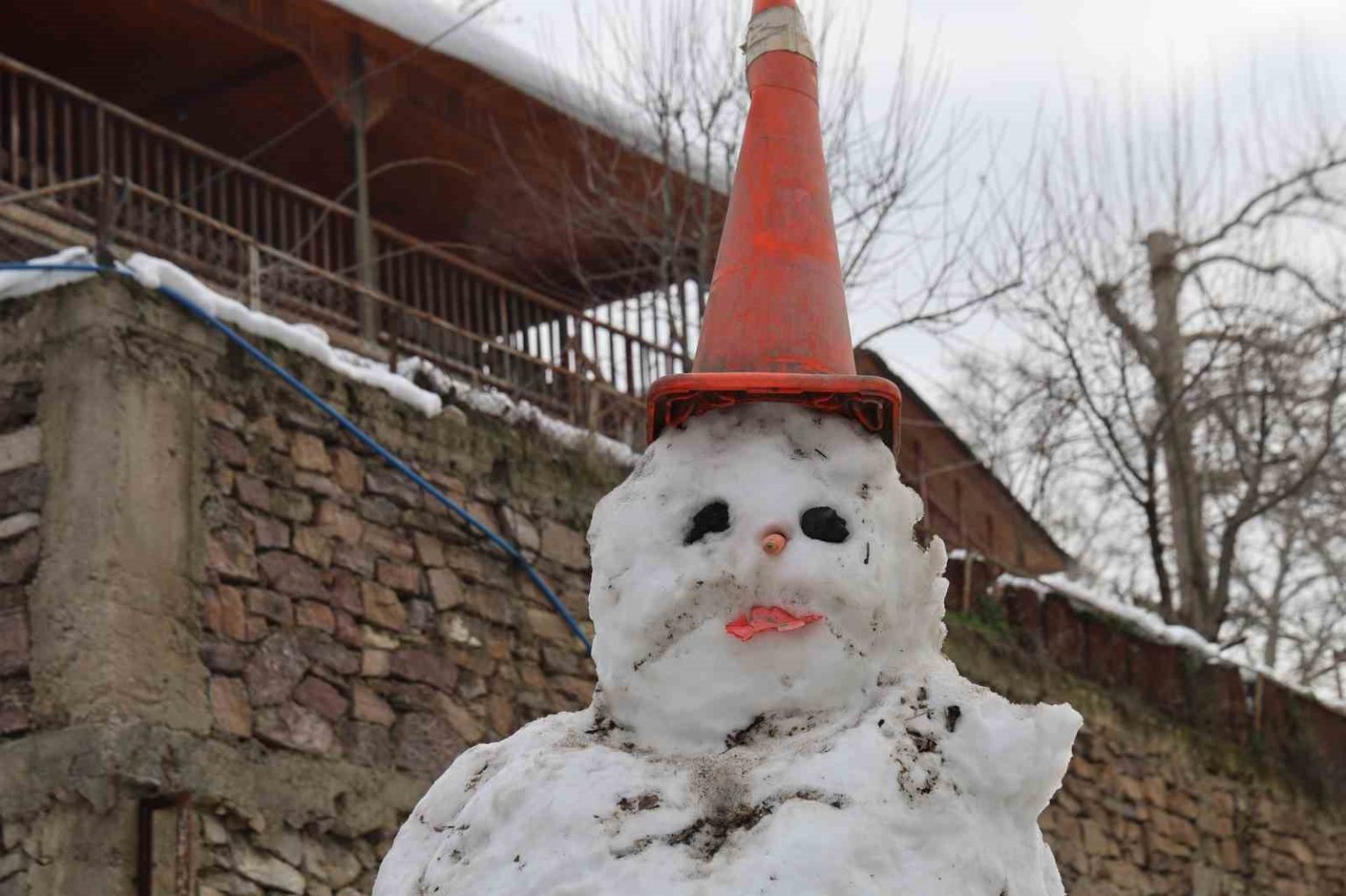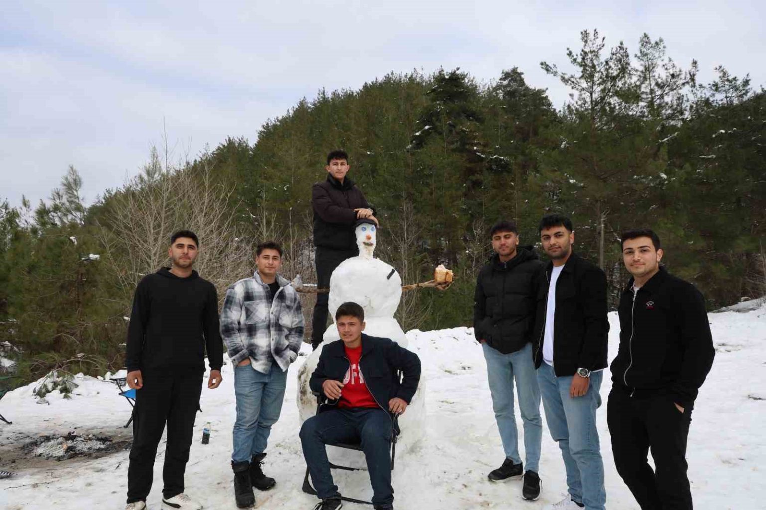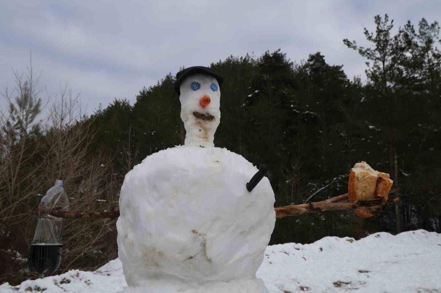 Kozan’da kar keyfi: Kardan adama sucuk ekmek ve şalgam ikram ettiler