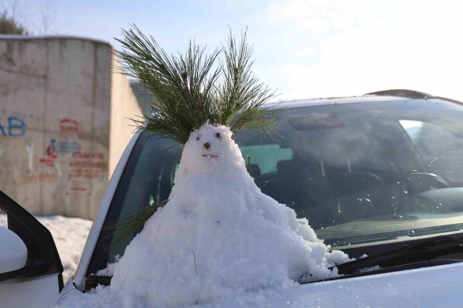 Aracının üzerine kardan adam yapan Şeref Kopçak da, “Horzum’a kar topu oynamaya geldik. Kardan adamı yaptık, onunla Kozan’a ineceğiz” dedi.
