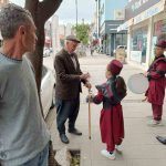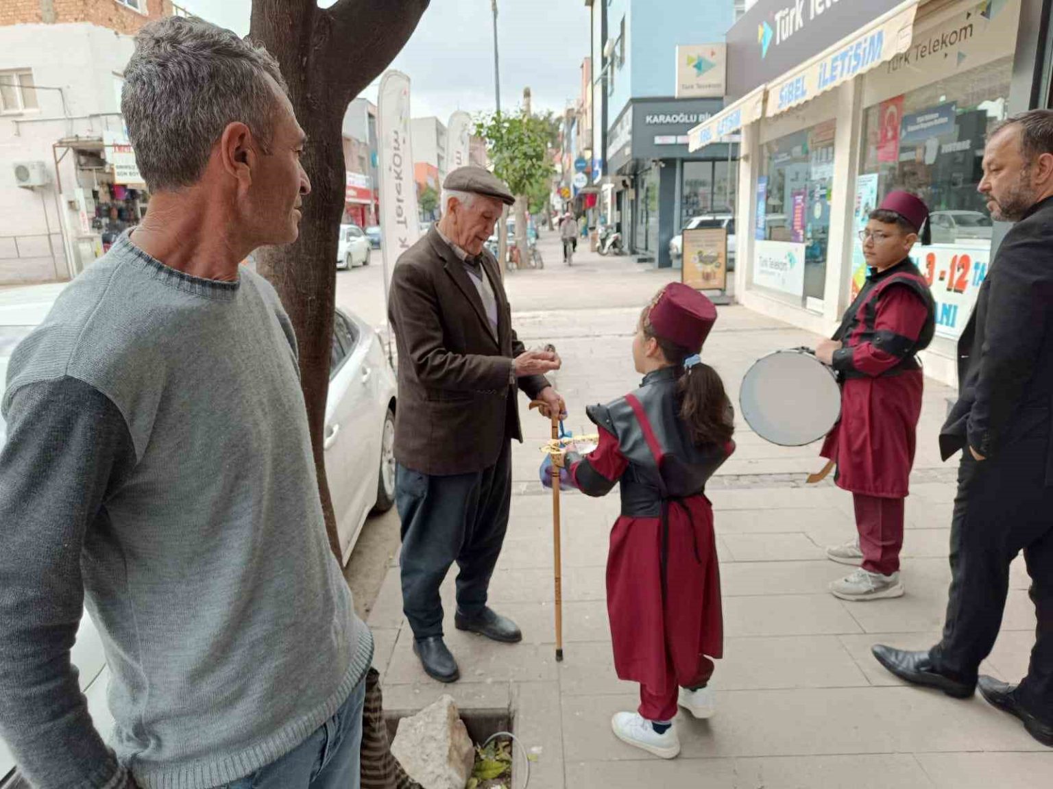 Adana’da bir grup ilkokul öğrencisi, Marif’in Kalbinde Ramazan etkinliği kapsamında ellerinde teflerle sokağa çıkıp ilahiler söyledi.