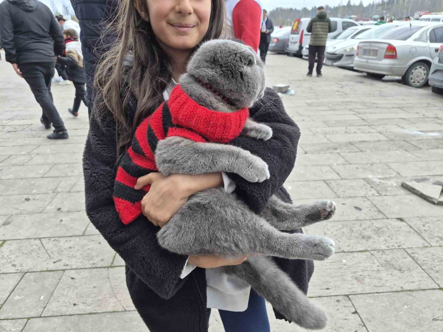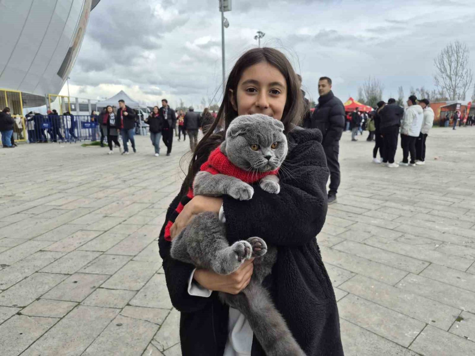 Arife Masal Sarıtaş, “Kedimin ismi Varil, kendisi 1 yaşında. Çok uyumlu bir kedi olduğu için onu da maça getirdik. Bizimle birlikte maçı takip edecek, tribüne çıkacağız. Hiç tırmalamıyor, kaçmaya çalışmıyor” dedi.