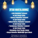 Fatih, Kanarya, Halkalı Merkez ve Yarımburgaz Taziyeevi ve Çok Amaçlı Salonunda, Kemalpaşa Semt Konağı ve Aşevi Yemekhanesi’nde Ramazan ayı boyunca her akşam iftar sofraları kurulacak. Ayrıca kentin işlek noktalarında iftara yetişemeyen vatandaşlar için ise mobil ikram araçlarından iftariyelik dağıtımı gerçekleştirilecek.