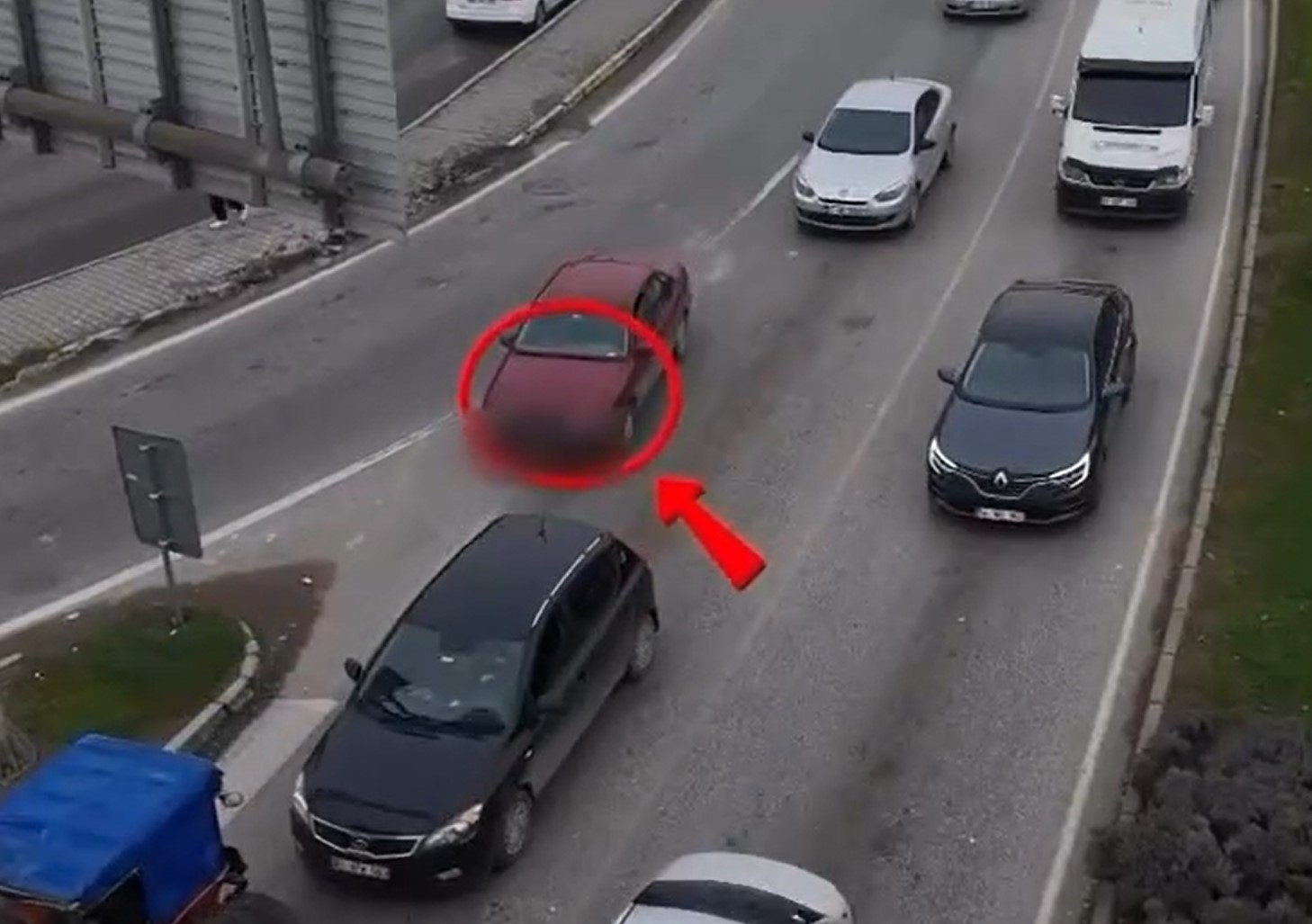 Dron kamerasıyla yapılan takiplerde, şerit ihlali yapan ve trafik güvenliğini tehlikeye düşüren sürücüler havadan saniye saniye tespit edildi. Uygulama sonucunda kural ihlali yaptığı belirlenen 107 araç sürücüsüne Karayolları Trafik Kanunu’nun ilgili maddelerince idari para cezası uygulandı.