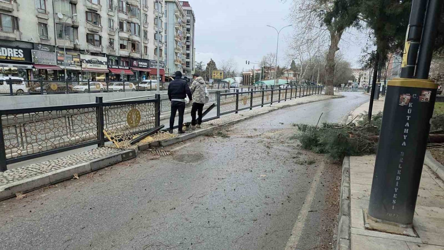 Kütahya’da etkili olan aşırı rüzgâr ve fırtına nedeniyle çok sayıda ağacın dalları gövdelerinden koparak çevreye savruldu.