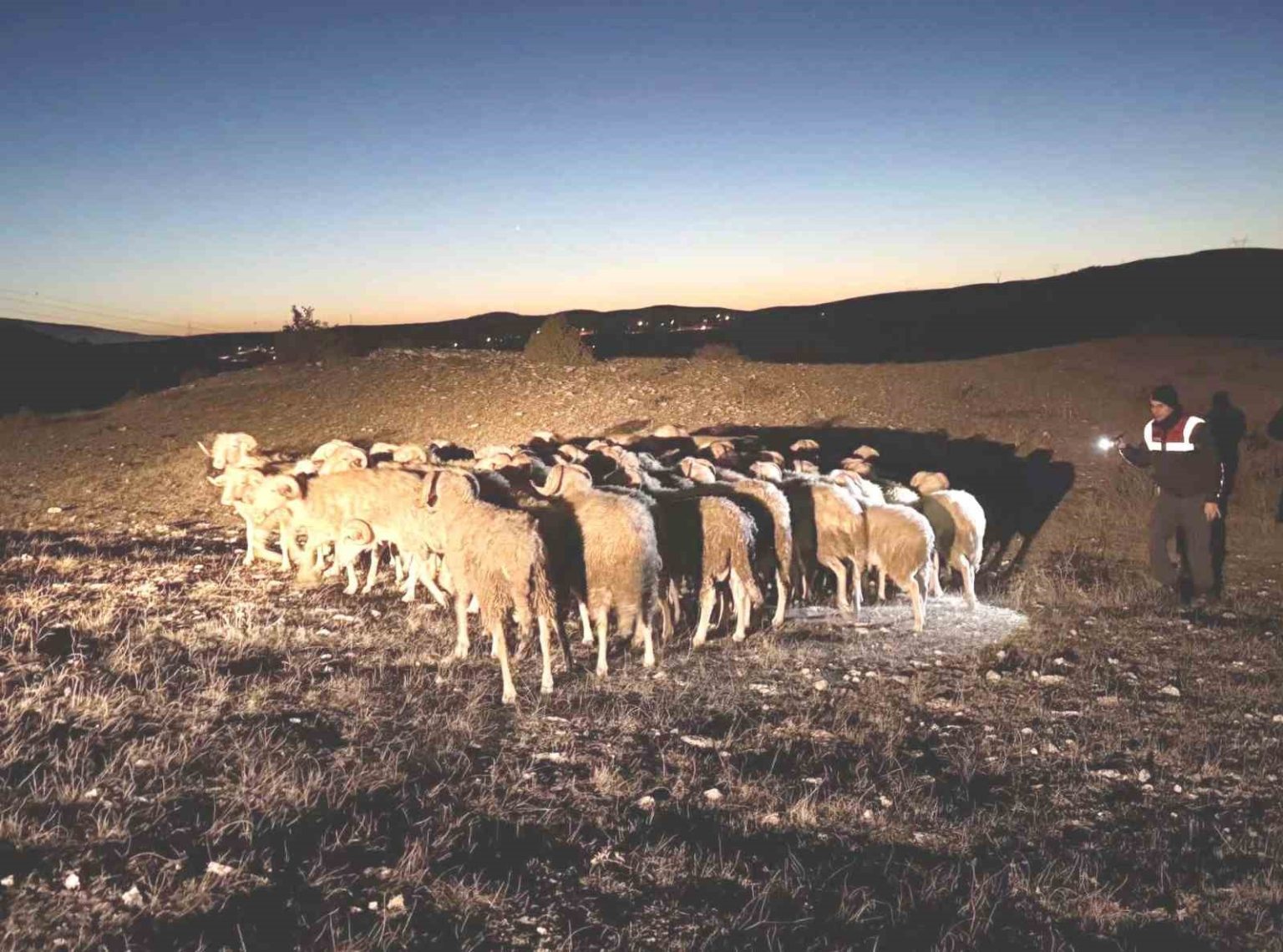 Kütahya’da kaybolan 68 adet küçükbaş hayvan ile 5 adet buzağı, jandarma ekiplerinin dron destekli arama çalışması sonucu bulunarak sahiplerine teslim edildi.