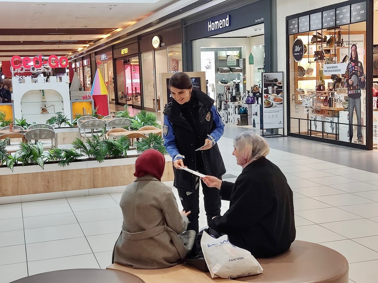 Çalışmalar kapsamında, alışveriş merkezi başta olmak üzere çeşitli iş yerlerinde esnaf ve vatandaşlara; dolandırıcılık, telefon dolandırıcılığı, hırsızlık ve sahte para, 112 Acil Çağrı Sistemi’nin etkin kullanımı konularında bilgilendirme yapılarak broşür dağıtıldı.
