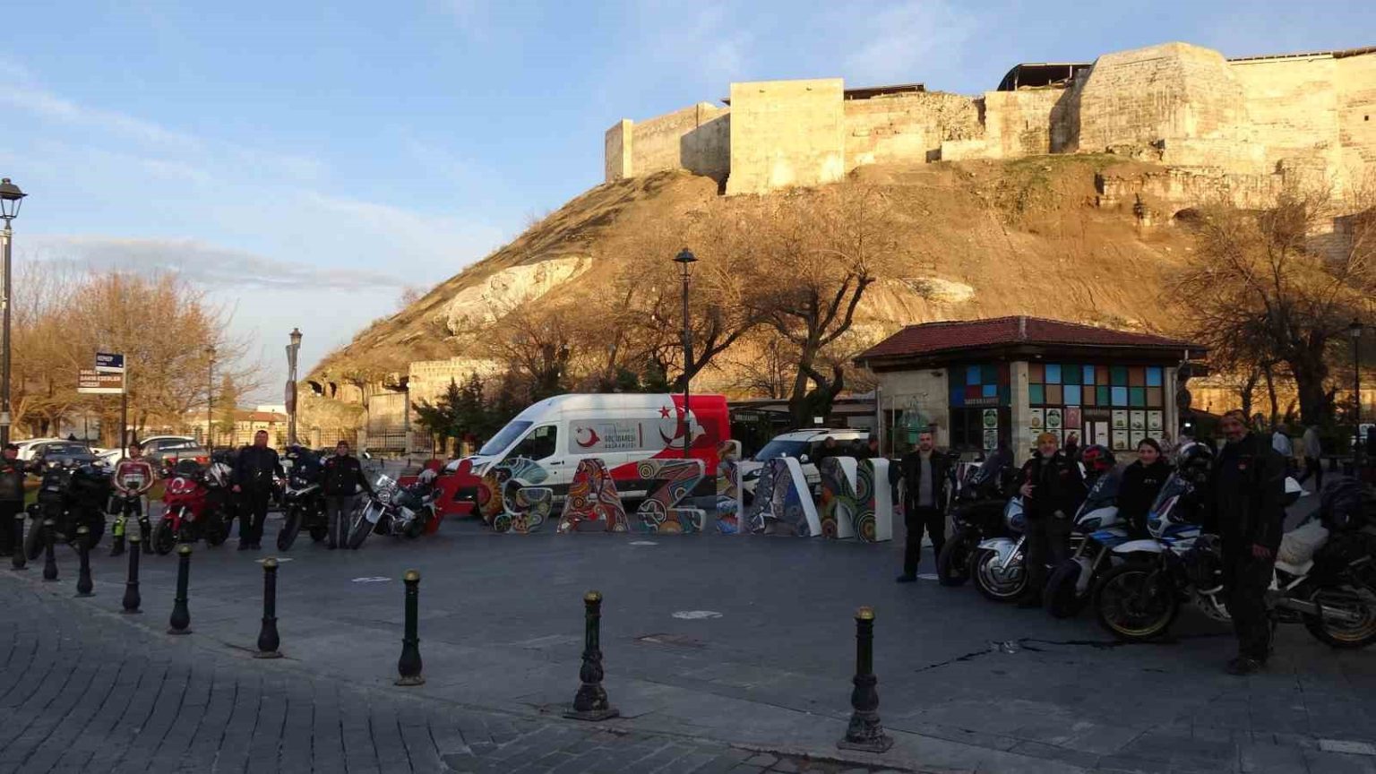 Motosiklet tutkunları, 500 yıllık Kaleoğlu Mağarası başta olmak üzere kentin tarihi mekanlarını gezdikten sonra Kilis üzerinden Suriye’ye geçiş yaparak Suudi Arabistan’ın Mekke şehrine doğru yola çıktı.