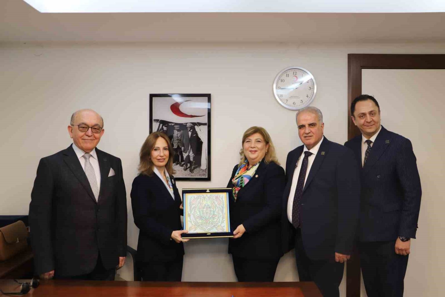 Ziyaret kapsamında KUTSO Yönetim Kurulu Başkanı Esin Güral Argat, Yönetim Kurulu Başkan Vekili Emin Yüce, KUTSO Yönetim Kurulu Üyesi ve Türk Kızılay Genel Merkez Yönetim Kurulu Üyesi Semra Tozaraydın ile Yönetim Kurulu üyeleri Fatih Alkış ve Melih Aslan, Türk Kızılay Genel Başkanı Fatma Meriç Yılmaz ile bir araya geldi.