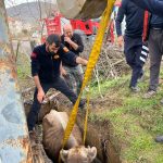 Düzce’de kuyuya düşen inek Cumayeri Belediyesi ekiplerince yapılan çalışmanın ardından bulunduğu yerden kurtarıldı.