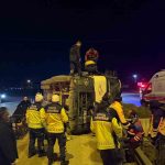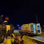 Kaza, gece saatlerinde Kuzey Marmara Otoyolu’nun İstanbul istikameti Sevindikli Gişeleri mevkisinde meydana geldi. Sürücüsü öğrenilemeyen 41 HB 167 plakalı beton mikseri, kontrolden çıkarak devrildi. İhbar üzerine olay yerine sağlık, itfaiye ve otoyol jandarma ekipleri sevk edildi. Kısa sürede olay yerine gelen jandarma ekipleri, yolda güvenlik önlemi aldı. İtfaiye ekipleri ise sıkışan sürücü ve yolcuyu çıkarmak için çalışma başlattı. Ekiplerin çalışması neticesinde araçtan çıkarılan 2 yaralı, sağlık ekiplerince yapılan ilk müdahalenin ardından hastaneye kaldırıldı.