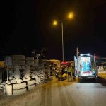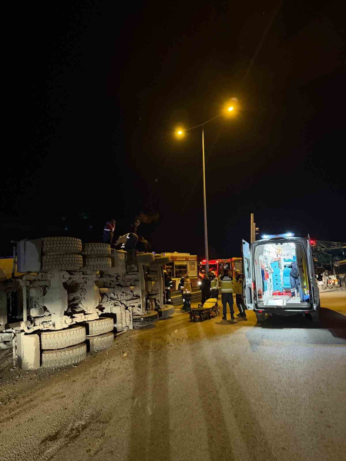 Kuzey Marmara Otoyolu girişinde beton mikseri devrildi: 2 yaralı