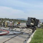 Kuzey Marmara Otoyolu’nda seyir halindeki köpük sprey yüklü kamyon, henüz bilinmeyen bir nedenle alev aldı. Kamyon kasasında bulunan spreylerin patlamasıyla otoyolda panik yaşanırken, yolun iki şeridi trafiğe kapandı.