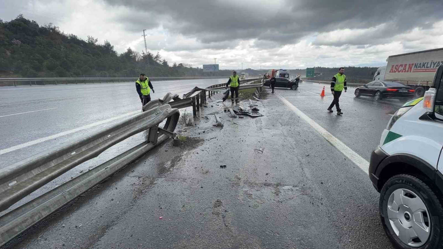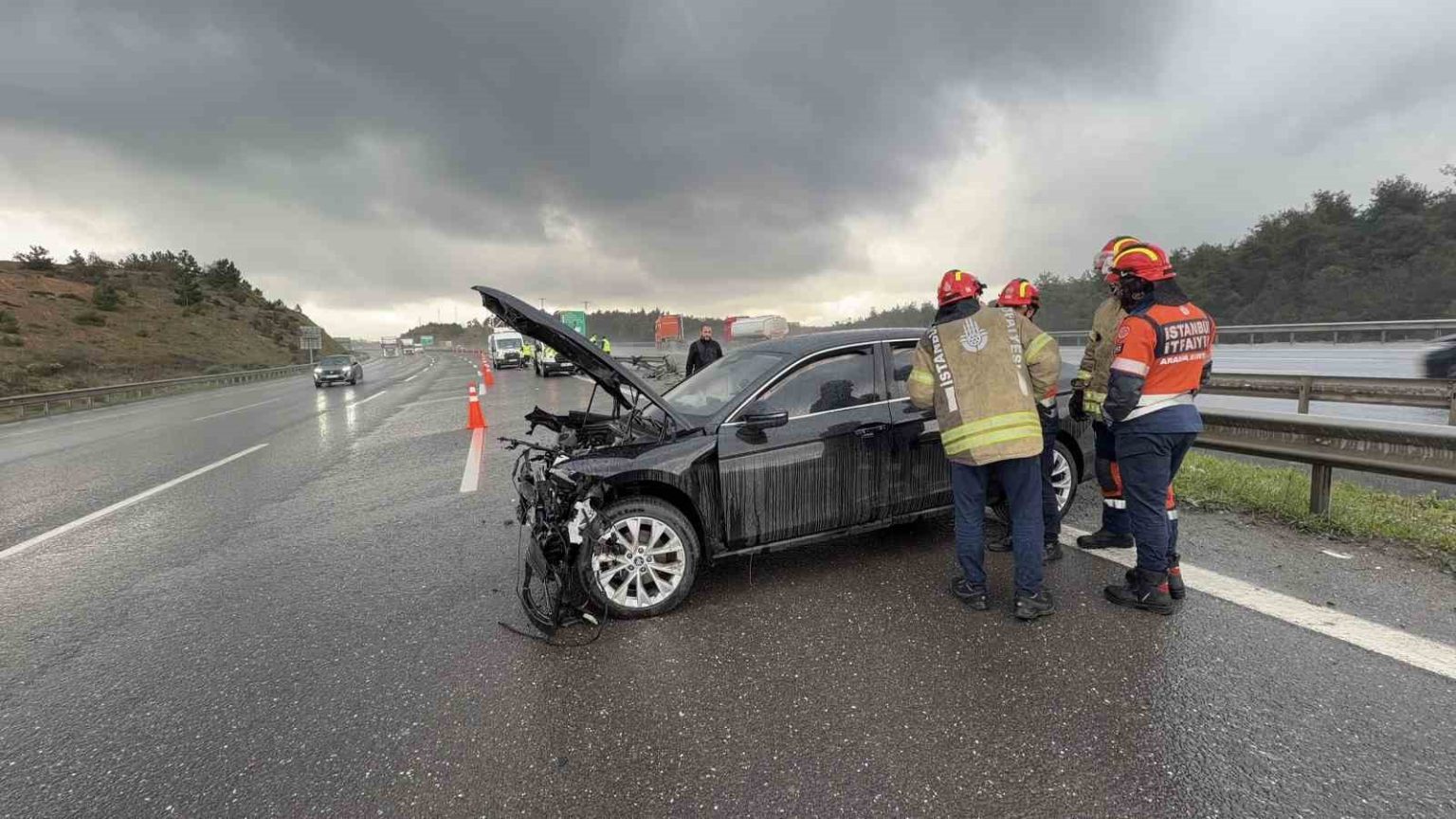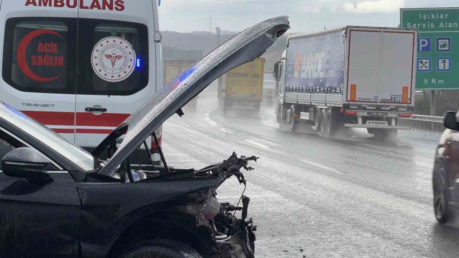 Kuzey Marmara Otoyolu’nda yağış kazayı beraberinde getirdi: 3 araç birbirine girdi