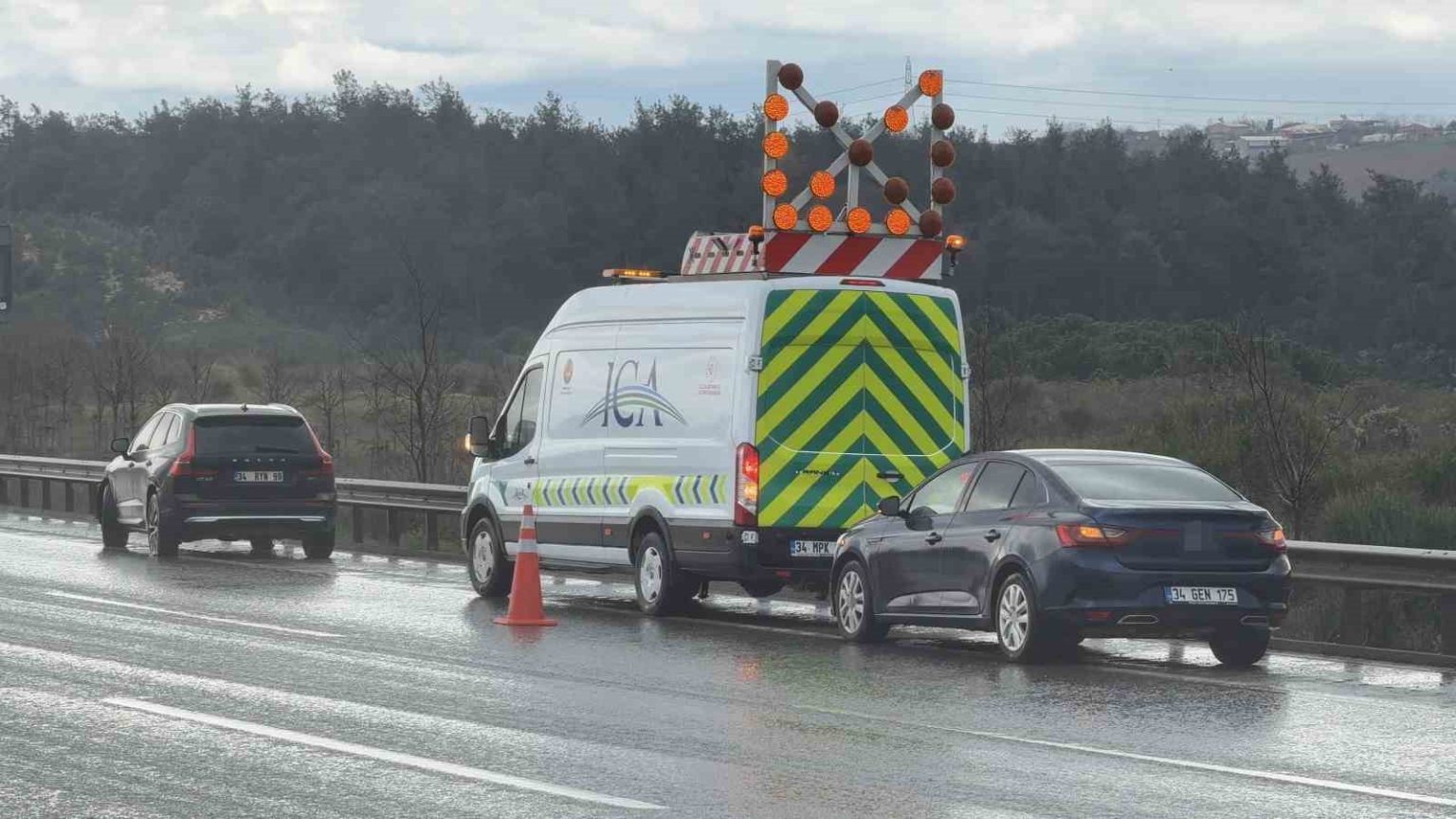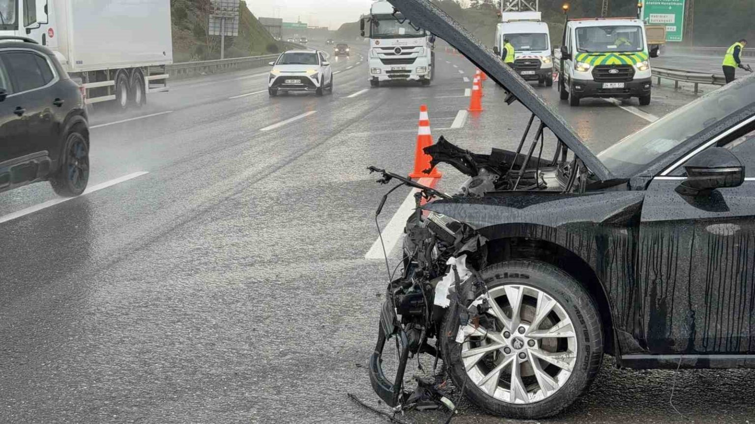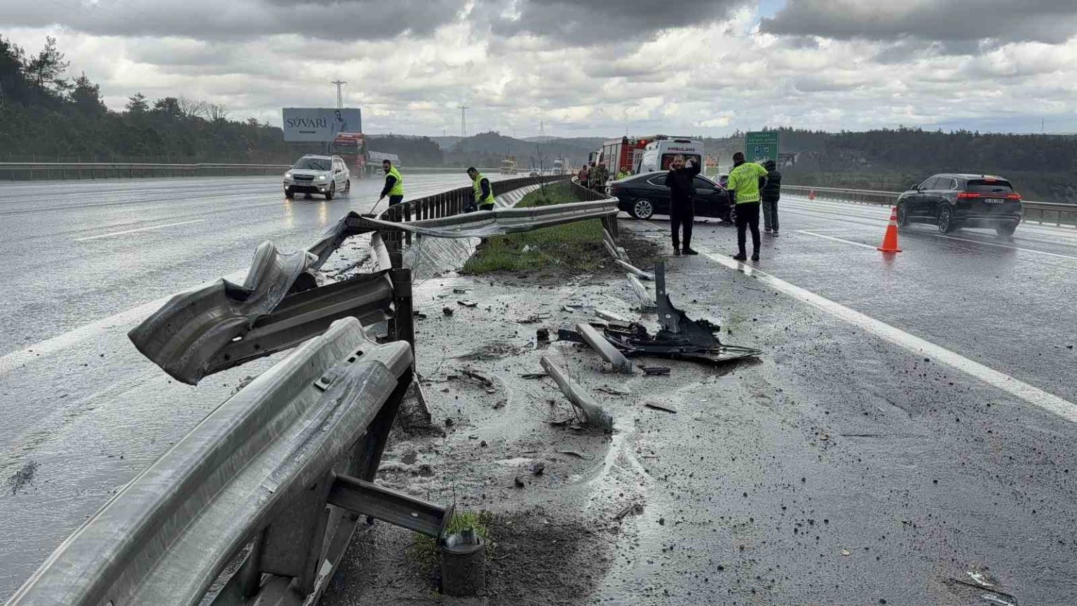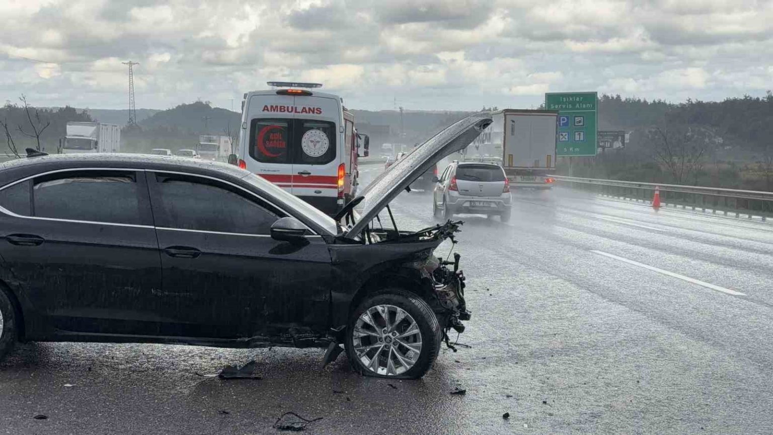 Kuzey Marmara Otoyolu’nda yağış kazayı beraberinde getirdi: 3 araç birbirine girdi