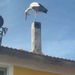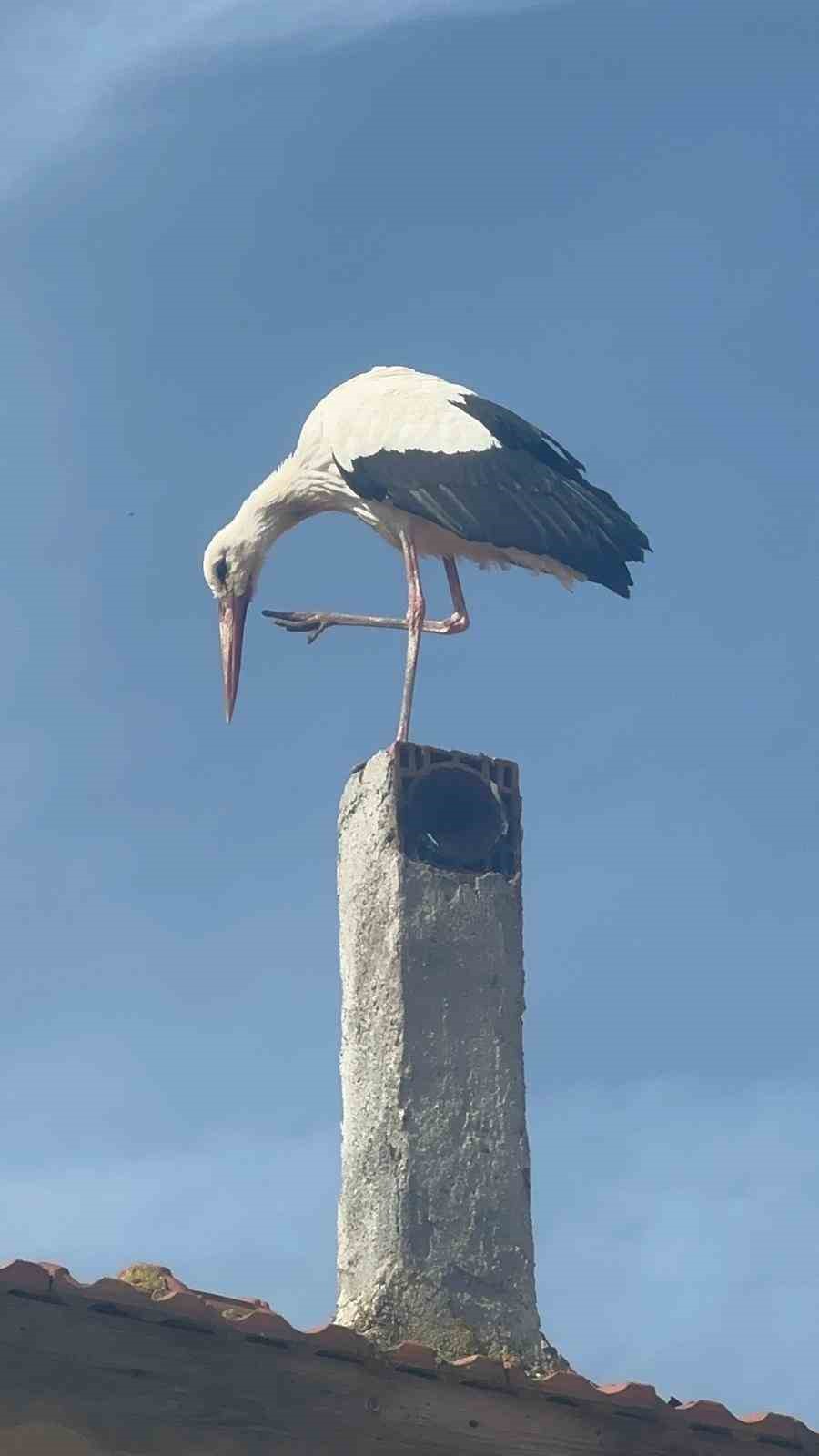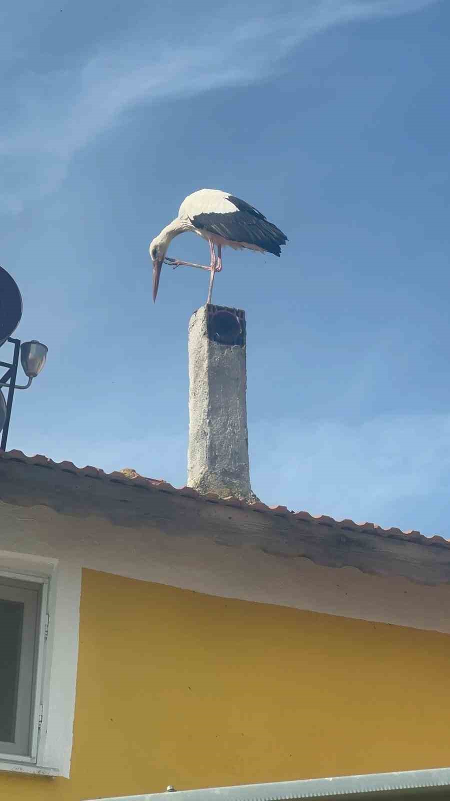 Adem Yılmaz’ın evinin bacasına ve çatısına konan leylek, Eskikaraağaç Mahallesi sakinlerini de heyecalandırdı.