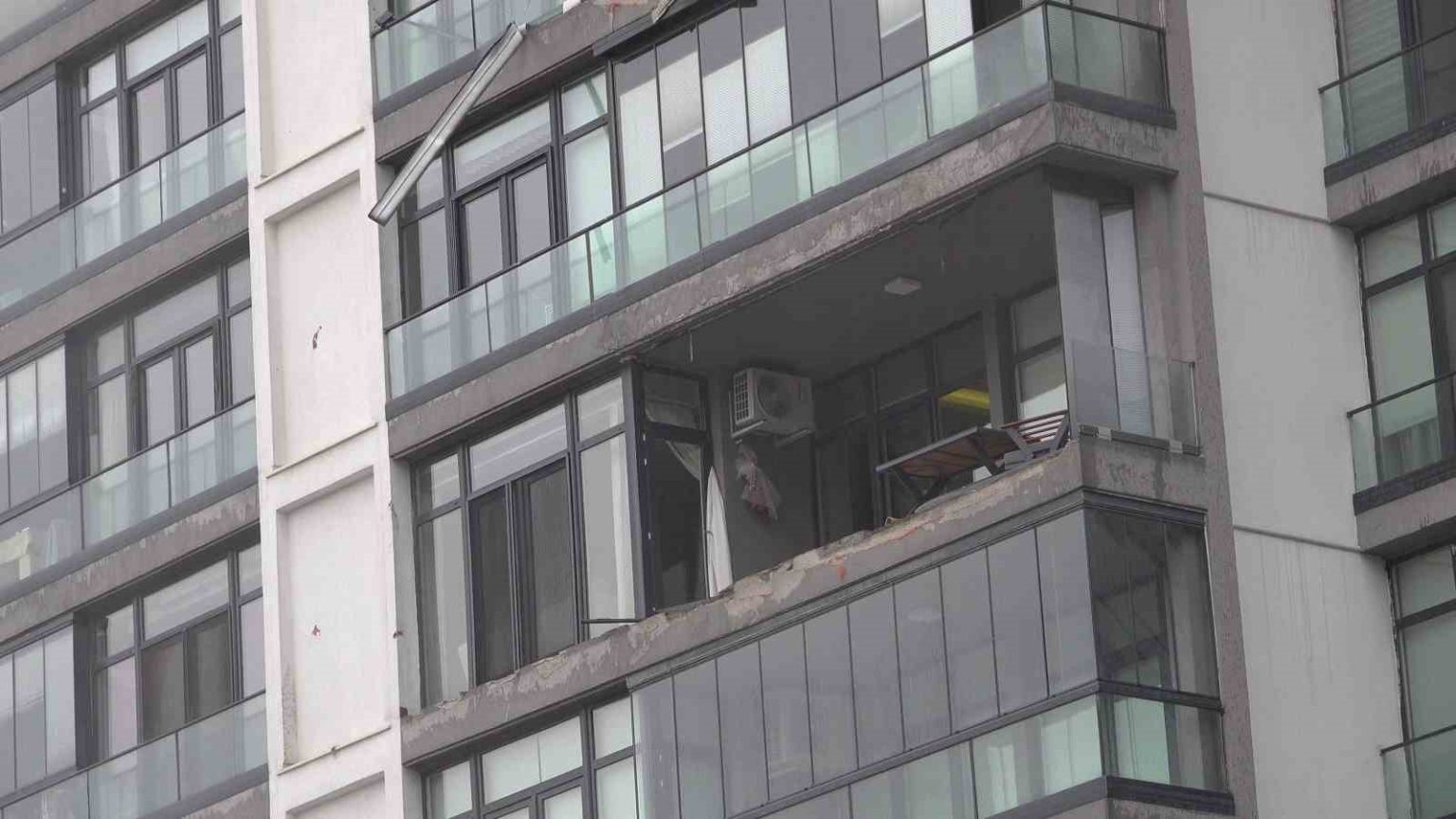 Lüks sitenin cam balkonları lodosla beraber uçtu