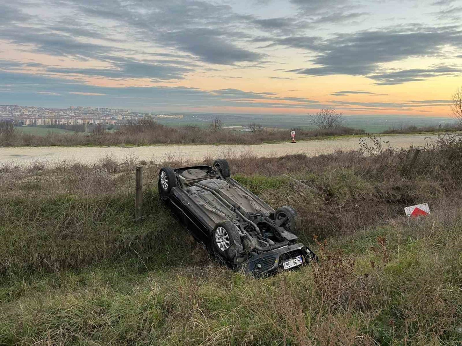 Lüleburgaz’da otomobil şarampole yuvarlandı: 1 yaralı