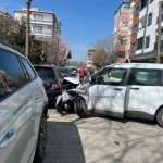 Kırklareli’nde hızla giden ticari araç, park halindeki 4 otomobile çarptı.