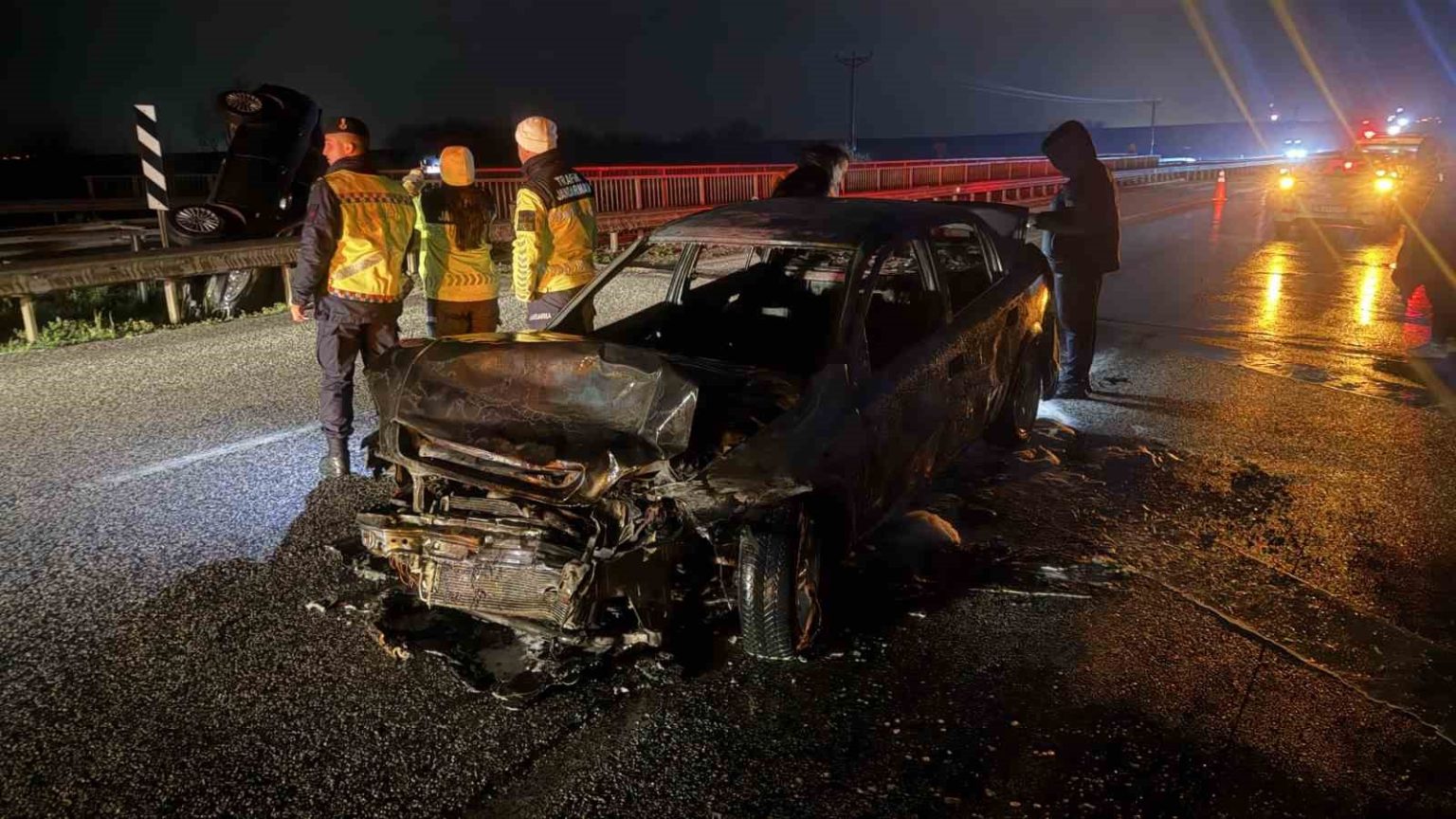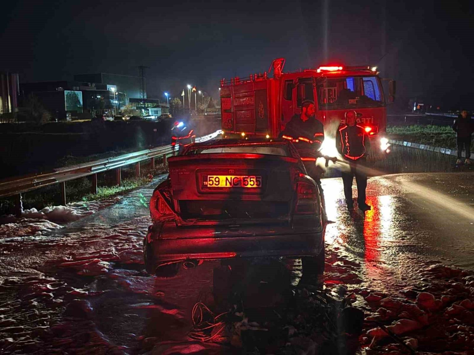 Lüleburgaz’da zincirleme kaza: 2 yaralı, 1 otomobil yandı