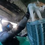 Balıkesir’in Edremit ilçesinde, denizin kenarındaki iskelenin altında mahsur kalan kedi, Sahil Güvenlik Komutanlığı’na bağlı balık adamların gerçekleştirdiği operasyonla kurtarıldı. O anlar balık adamların kafa kameralarına saniye saniye yansıdı.