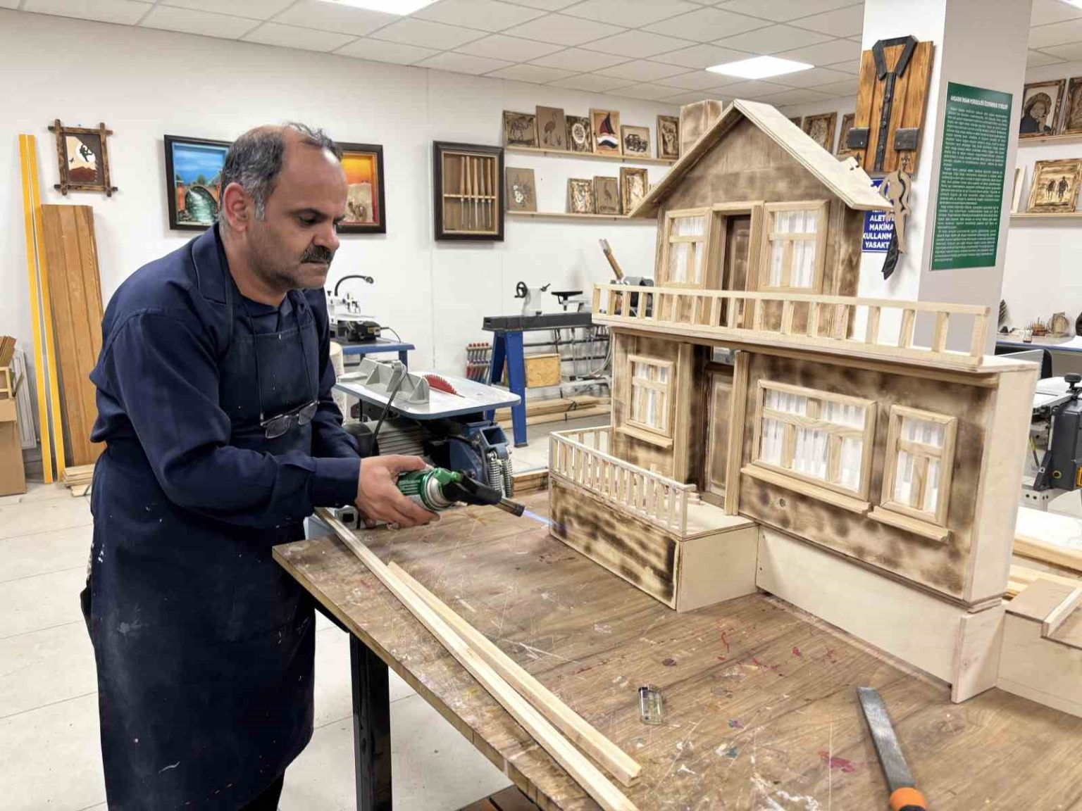 Bulmuş, “Yılmaz hocamla beraber kafa kafaya verdiğimiz maket tarzında bir köy oluşturmayı düşünüyoruz. Buradaki atölyelerin en büyük faydalarından biri her ne olursa olsun buraya gelen gençlerimiz teknolojiden telefondan uzak duruyorlar. Biz onları mutlu görüyoruz. Onlar da bizi mutlu görünce karşılıklı mutluluklarımızı bir araya getirip daha yeni fikirlere daha yeni projelere adım atmaya gayret edeceğiz” diye konuştu.