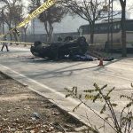Öte yandan, yaşanan kaza anı güvenlik kamerasına anbean yansıdı. Görüntülerde caddede araçlar seyrederken, iki aracın arasından makas atan otomobilin kontrolden çıkarak ağaca çarpıp karşı şeride takla attığı görülüyor.