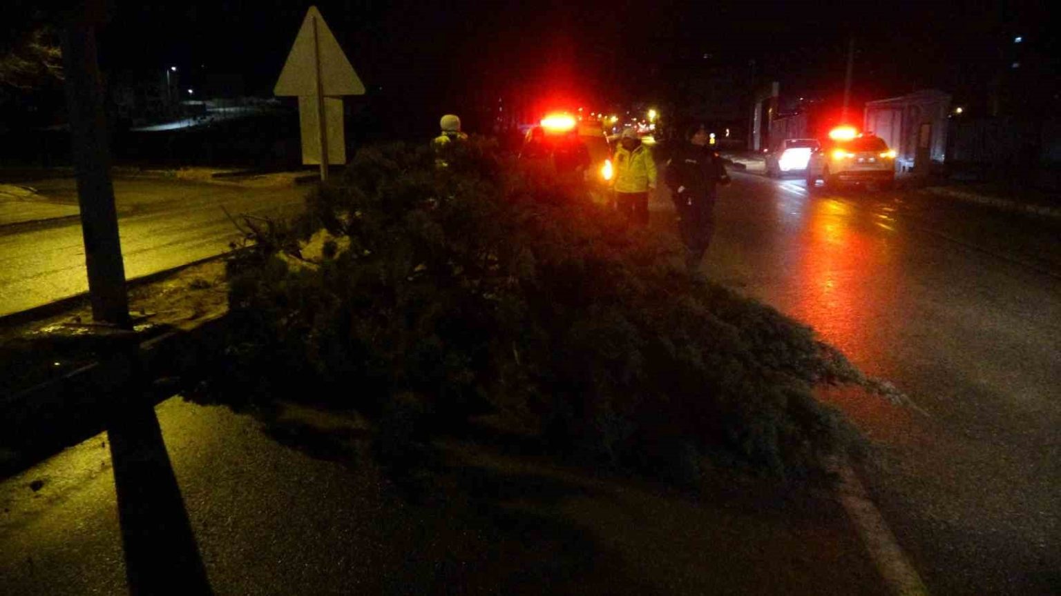 Malatya’da etkili olan fırtına, sağanak yağışla birlikte ağaçları kökünden söktü.