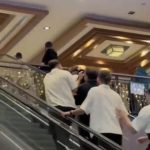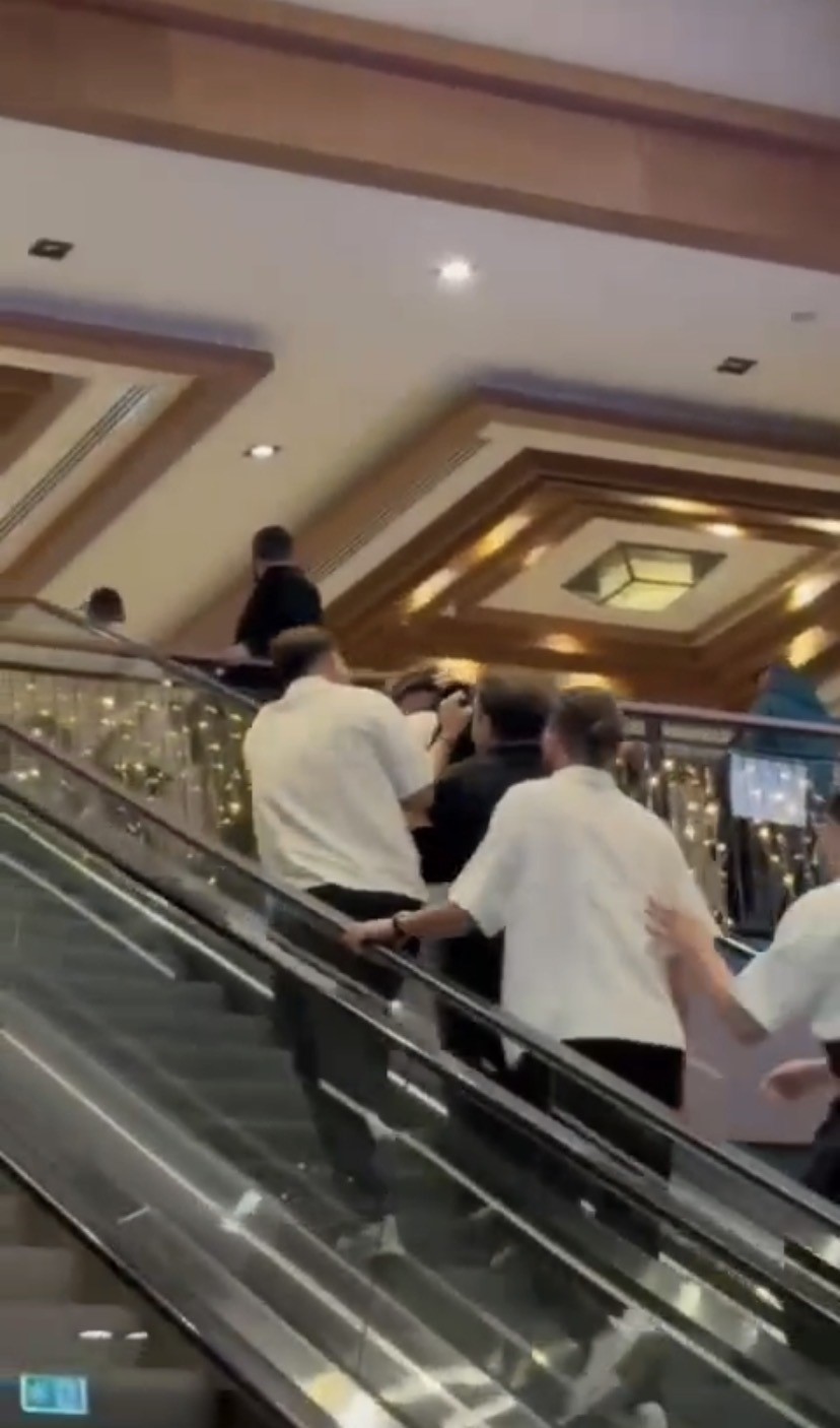 Yaşananlar o sırada alışveriş merkezinde bulunan bir vatandaşın cep telefonu kamerasına yansıdı. Görüntülerde saldırganın işletme çalışanları tarafından yürüyen merdivenlerde götürülerek uzaklaştırıldığı ve taraflar arasında tekme tokat kavga yaşandığı anlar yer aldı.