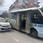 Maltepe’de seyir halindeki minibüsün Nissan marka araca çarptığı kazada 3 kişi hafif yaralanırken, kaza anı kameralara yansıdı.