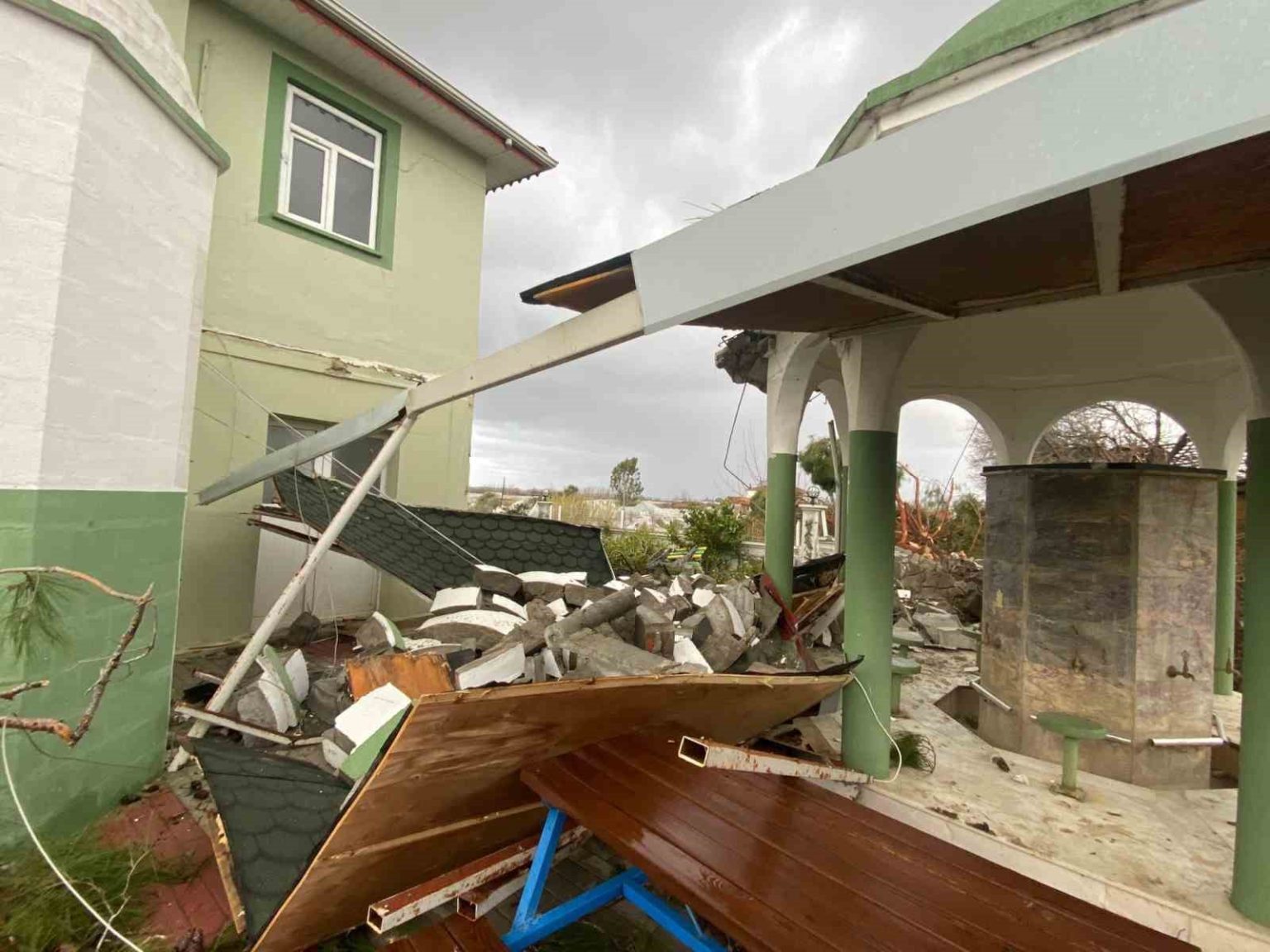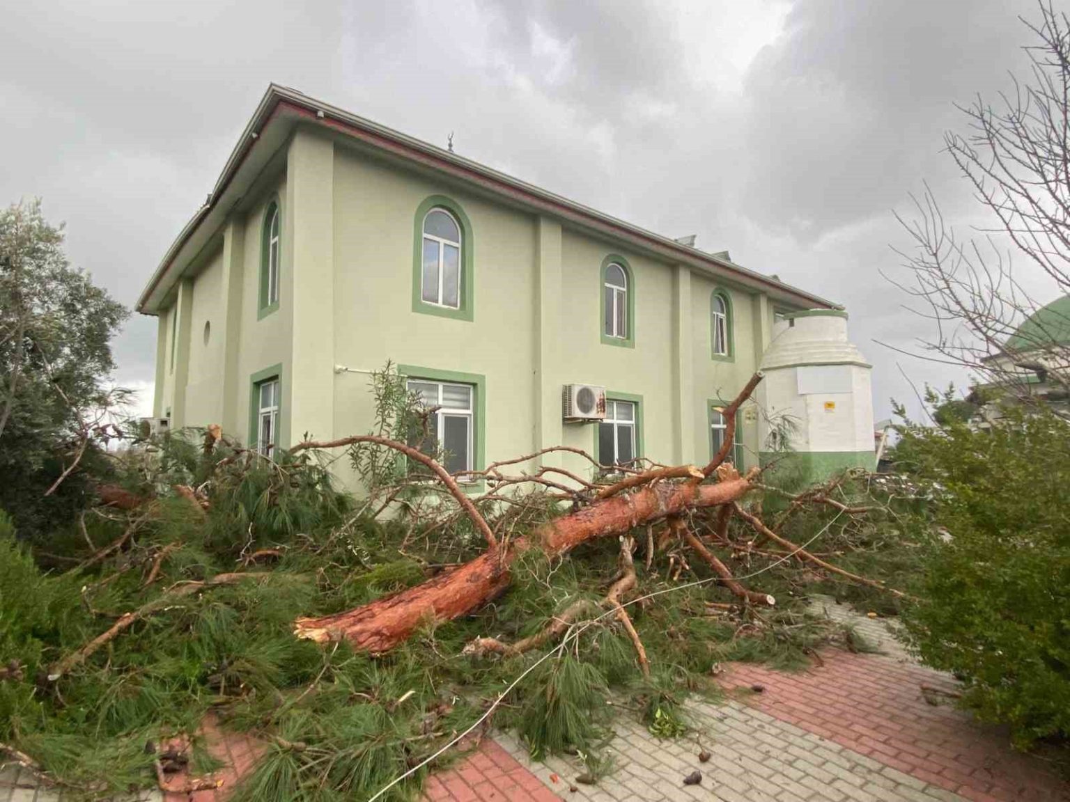Cami minaresi yıkıldı, ağaçlar kökünden söküldü
