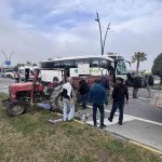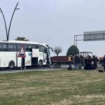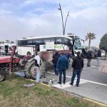 Kaza, saat 11.30 sıralarında İzmir-Manisa çevre yolu Saat Kulesi kavşağı Menemen Köprüsü girişinde meydana geldi. Edinilen bilgiye göre Batı Çevre Yolu’nda Akhisar yönüne seyreden D.K. (72) idaresindeki 16 AFP 130 plakalı otomobil, aynı yönde sağ şeritte ilerleyen M.Y. (48) yönetimindeki 45 ET 318 plakalı asfalt atığı yüklü traktöre çarptı. Çarpmanın etkisiyle savrularak sol şeride geçen otomobile, İ.E. (52) idaresindeki 10 HF 160 plakalı Uludağ firmasına ait İzmir-İstanbul seferini yapan yolcu otobüs çarptı. Zincirleme kazada araçlarda ağır hasar meydana gelirken ihbar üzerine bölgeye çok sayıda ambulans polis ve itfaiye ekibi sevk edildi. Kazada traktör sürücüsü M.Y., otomobil sürücüsü D.K., otomobilde yolcu olarak bulunan N.K., otobüste görevli muavinler E.B. (20) ve K.Ş. (26) yaralandı. Yaralılar ambulansla hastanelere kaldırılarak tedavi altına alındı. Otobüste kazadan yara almadan kurtulan 11 yolcu ise başka bir otobüse bindirilerek yolculuklarına devam etti.