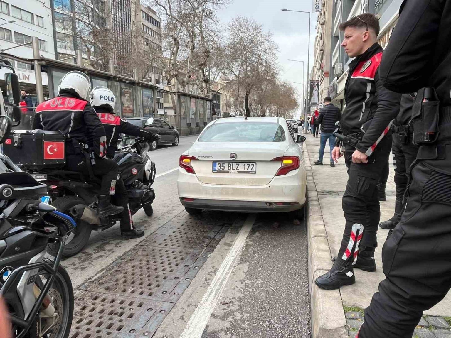 Olay, saat 14.45 sıralarında Konak ilçesinde meydana geldi. Edinilen bilgiye göre, Manisa’da bir kuyumcudan çalındığı iddia edilen 60 gram altını bozdurmak için ilçedeki bir kuyumcuya giren şahıslar, kuyumcunun durumdan şüphelenerek polise ihbarda bulunması üzerine takibe alındı. İhbar üzerine harekete geçen İl Emniyet Müdürlüğü’ne bağlı Motosikletli Polis Timleri, kısa sürede bölgeye geldi. Polis ekiplerini fark eden şüphelilerden biri yaya olarak kaçıp izini kaybettirirken, H.S. (26) isimli şüpheli yakalandı. Şüphelilerin olay yerine geldiği araçta yapılan incelemede ise kurşun izlerinin bulunduğu görüldü. Gözaltına alınan H.S. emniyete götürülürken, polis ekipleri kaçan diğer şüphelinin yakalanması için çalışma başlattı.