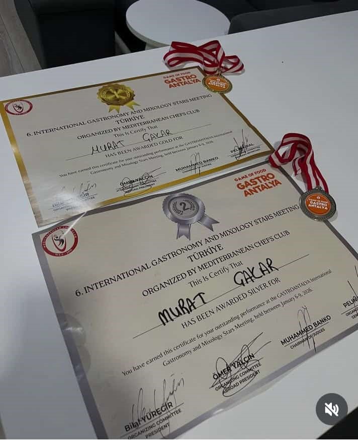 Antalya’da düzenlenen Gastro Antalya yarışmalarına katılan Manisalı şef Murat Çakar, iki gün süren organizasyonda 1 Altın ve 1 Gümüş madalya kazanarak önemli bir başarı elde etti.
