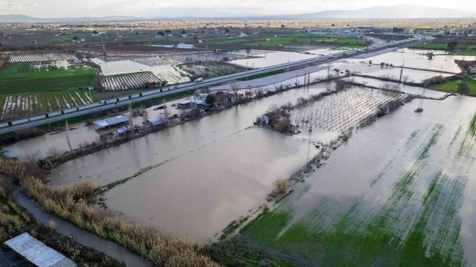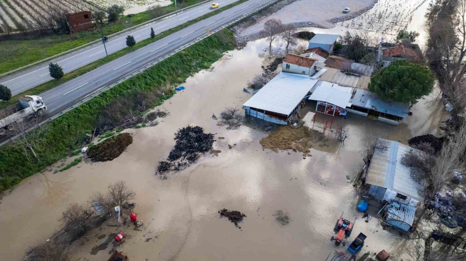 Gecenin karanlığında yaşanan taşkının boyutu, sabahın ilk ışıklarıyla birlikte havadan ve karadan çekilen görüntülerle ortaya çıktı. İzmir-Manisa çevre yolu çevresinde bulunan geniş tarım arazileri sular altında kalarak adeta göle dönerken, bölgedeki bir hayvan damı da taşkın sularından ciddi şekilde etkilendi. Dün akşam dereye düşen otomobilin ise ağaçların arasına sıkışmış hali gün yüzüne çıktı. Aracın bulunduğu yerden çıkarılması için suyun şiddetinin azalması bekleniyor.