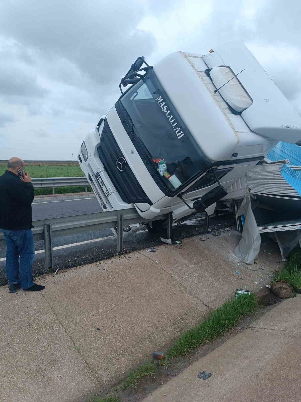 Mardin’de sürücüsünün kontrolünden çıkan tır bariyerlere çarptı. Kaza maddi hasarla atlatıldı.