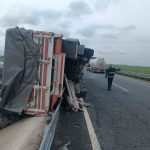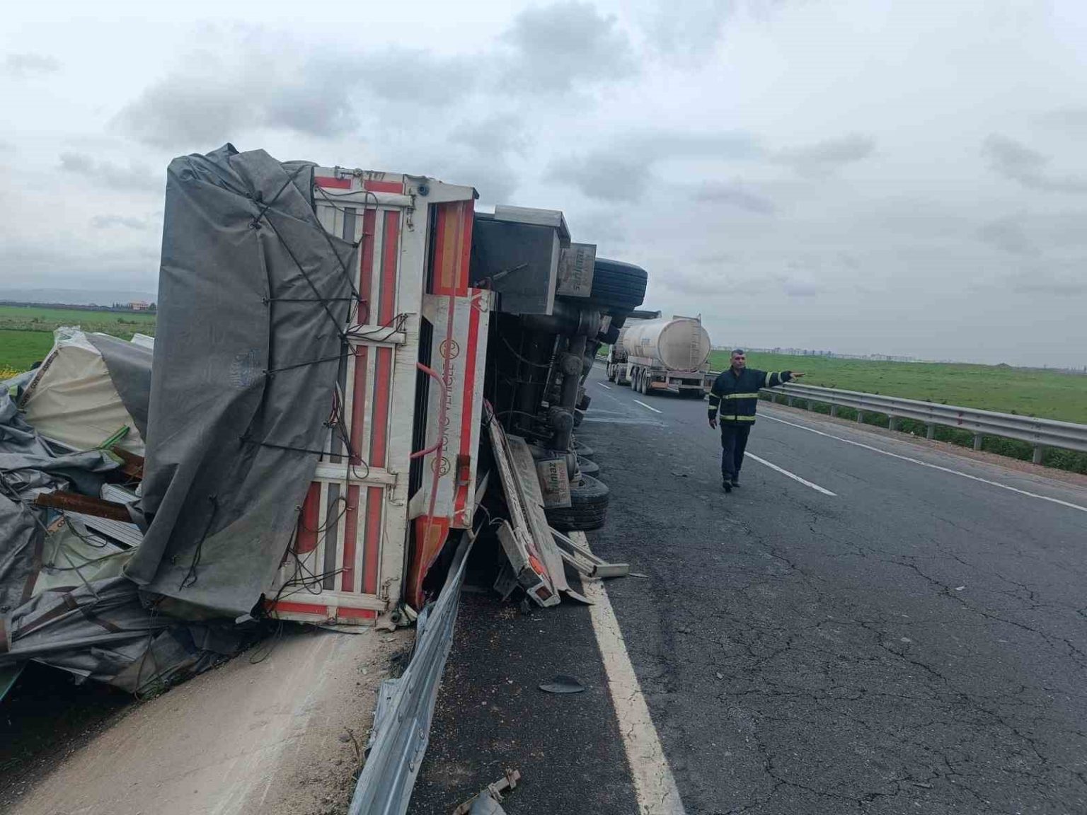 Mardin’de sürücüsünün kontrolünden çıkan tır bariyerlere çarptı