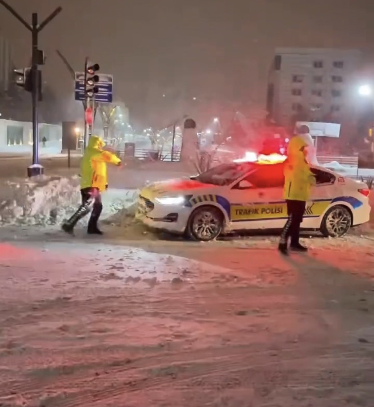 Trafik akışını kontrol etmek ve güvenliği sağlamak amacıyla sahada olan ekipler, çocukların kendilerine kar topu atmasıyla oyuna dahil oldu. Bir anda resmi ekip aracının etrafında toplanan çocuklarla polisler arasında neşeli bir kar topu savaşı başladı. Polis memurlarının çocuklarla şakalaşması ve kar topu oynaması çevredeki vatandaşlar tarafından büyük beğeni topladı.