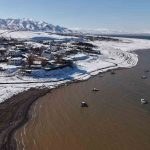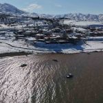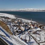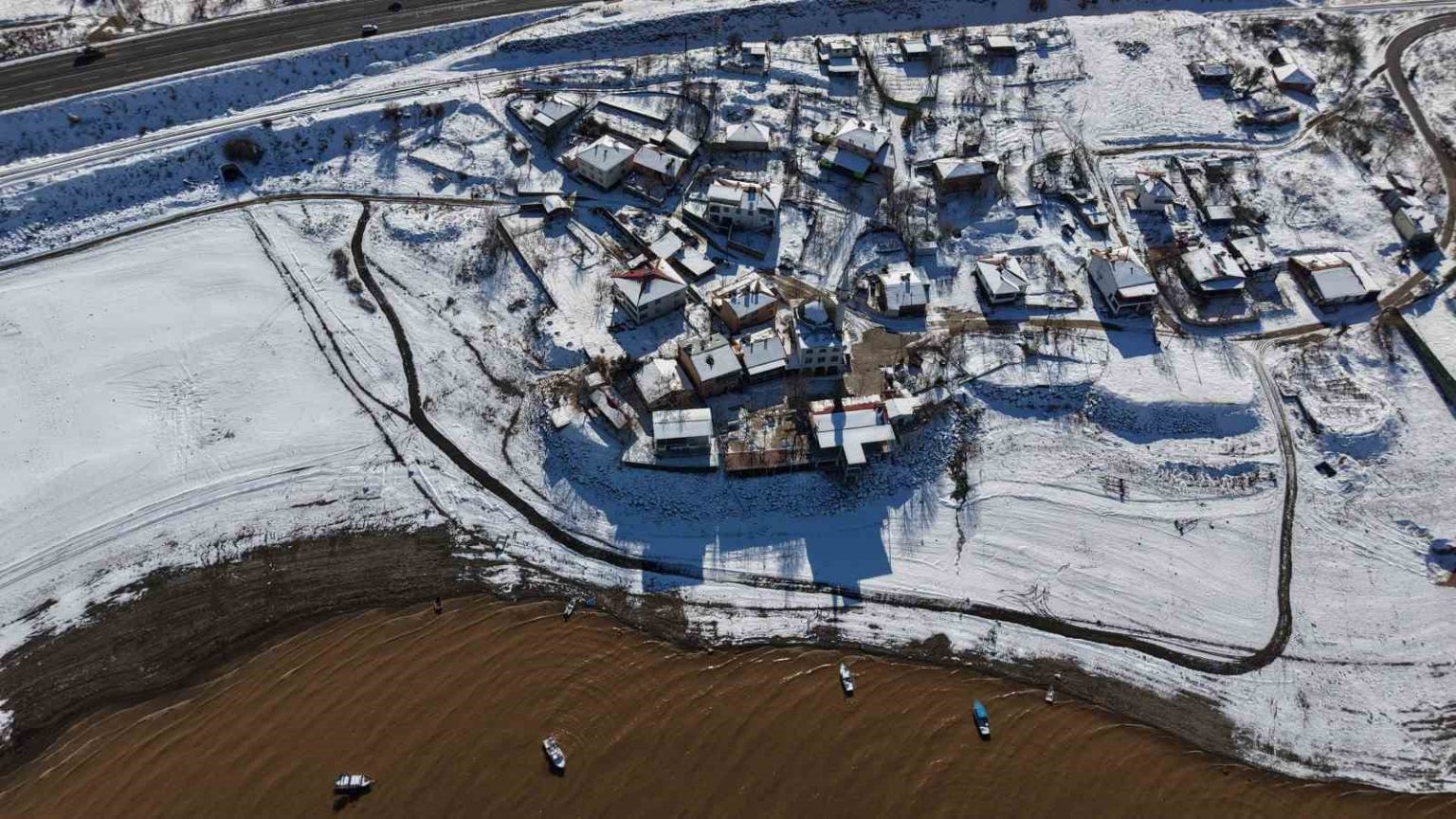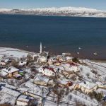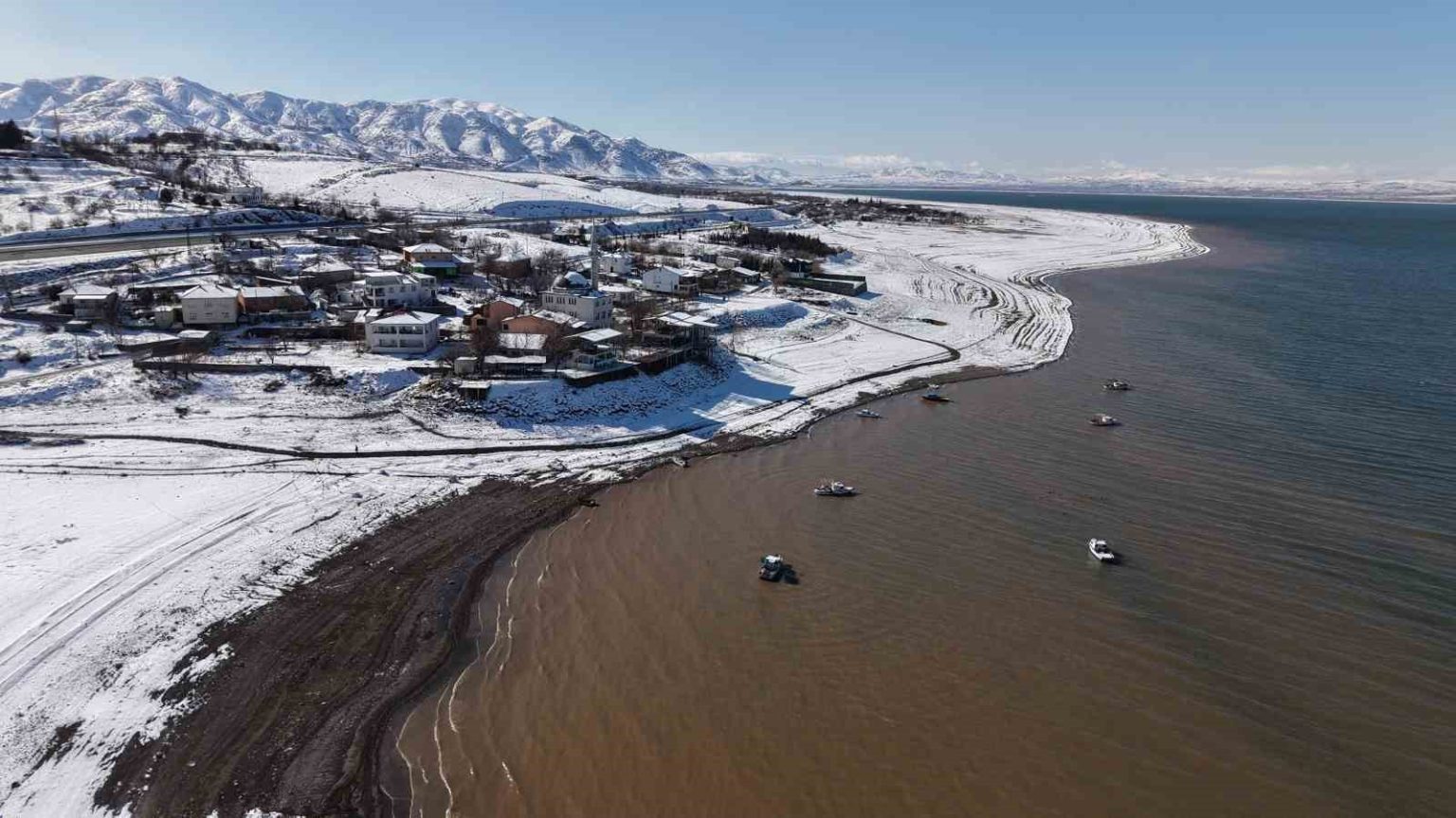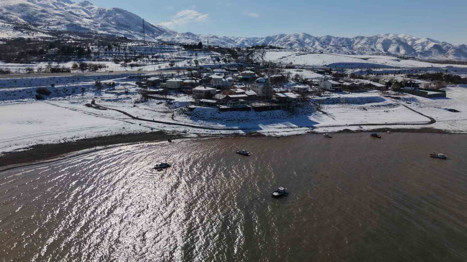 Elazığ’da Keban Baraj Gölü havzasında yer alan Aşağı İçme köyü, baraj suyu ve kar görüntüsüyle ortaya eşsiz manzaralar sundu.