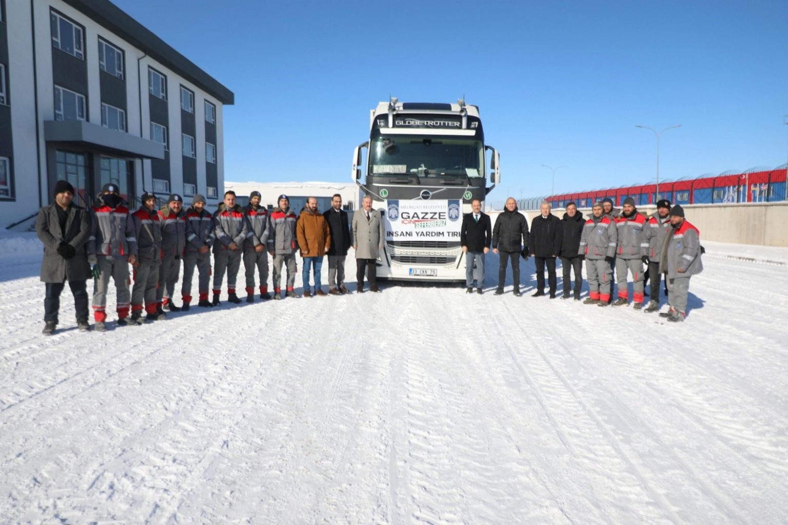 Melikgazi Belediyesi tarafından, yaraları sarmak için Gazze’ye gönderilmek üzere hazırlanan insani yardım tırı, Mimarsinan OSB’den dualarla yola çıktı.