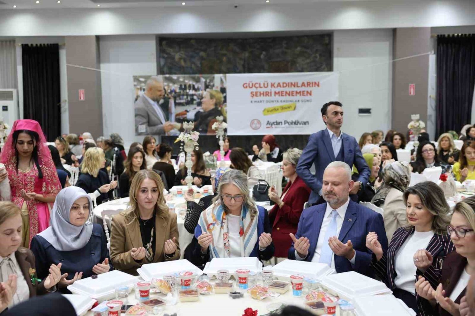 Menemenli kadınlar 8 Mart Dünya Kadınlar Günü’nü, iftar programıyla karşıladı. Binden fazla kadının katılımıyla düzenlenen iftar programında Menemen Belediye Başkanı Aydın Pehlivan, “Kadın güçlü olursa aile güçlü olur, toplum güçlü olur, Menemen güçlü olur, İzmir güçlü olur, Türkiye güçlü olur. Gururla ifade etmek gerekirse Menemen güçlü kadınların kentidir” dedi.