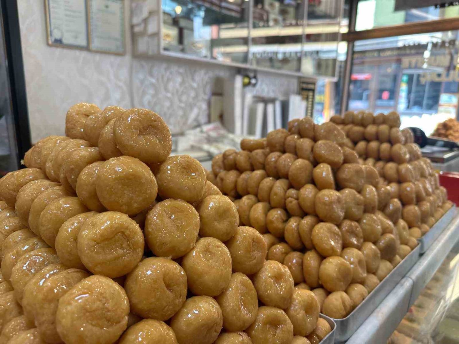 “Un, yağ ve su içeriyor ama el emeği önemli olan. Yapılışı çok zor. Elde tek tek işleniyor. 50 kilo Ramazan helvası yapana kadar 150 tepsi baklava yaparsın. Ramazan ayına özel işçi alıyoruz. Onlar tek tek işliyor. Hamur yoğruluyor. Çıkınca hamur dinleniyor. Tatlı olana kadar 3-4 kez periyotlar halinde dinlendiriliyor. Elde yuvarlanır, işlenir. Bütün aşamalarından sonra yağda kızartılıyor ve şekere batırılıyor. 15 kişi çalışıyor, sabah 08.00 gibi başlıyor, akşam 18.00’e kadar bununla ilgileniyorlar.”