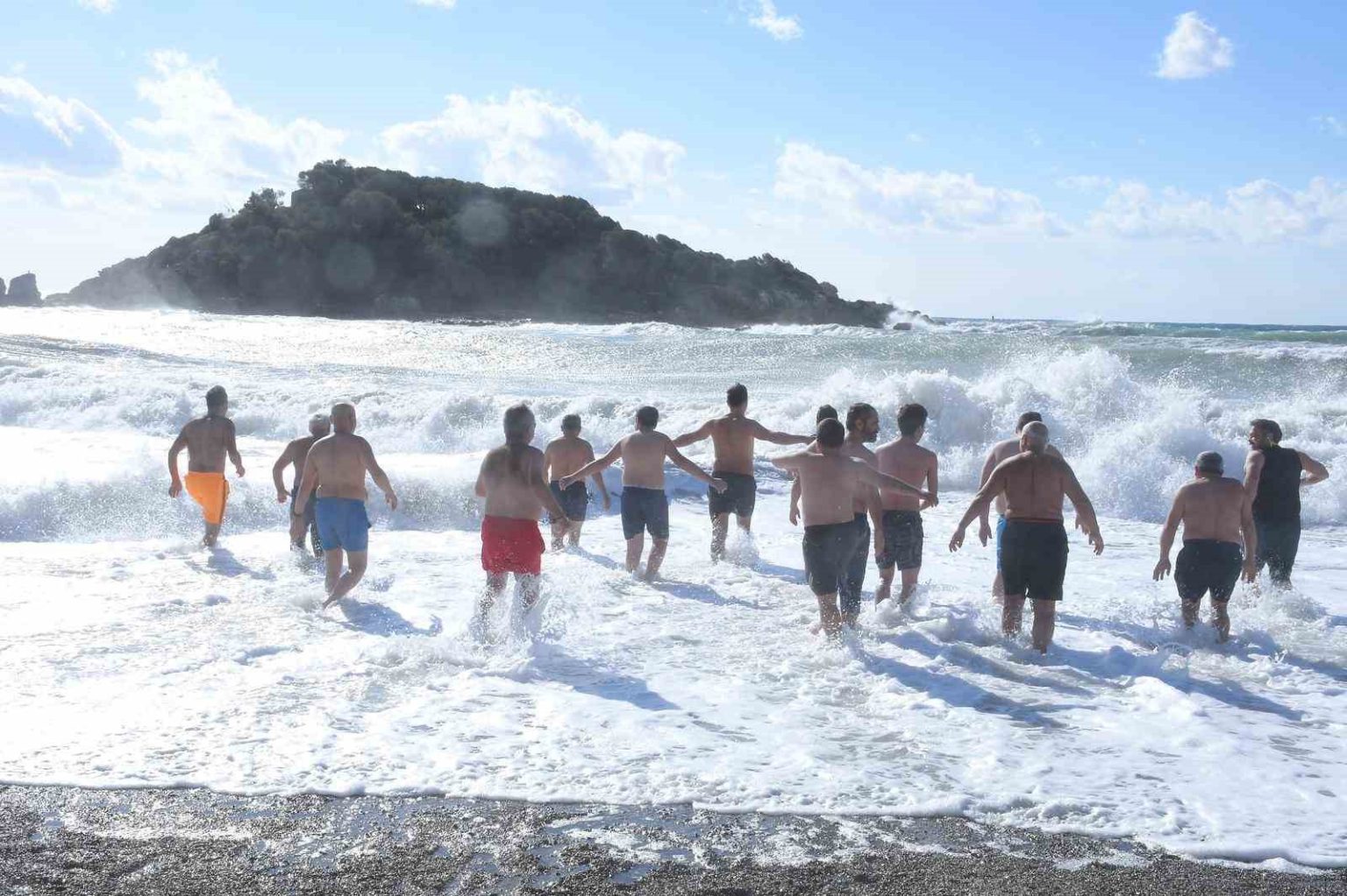 Mersin’de gelenek bozulmadı, yeni yılın ilk gününde denize girdiler