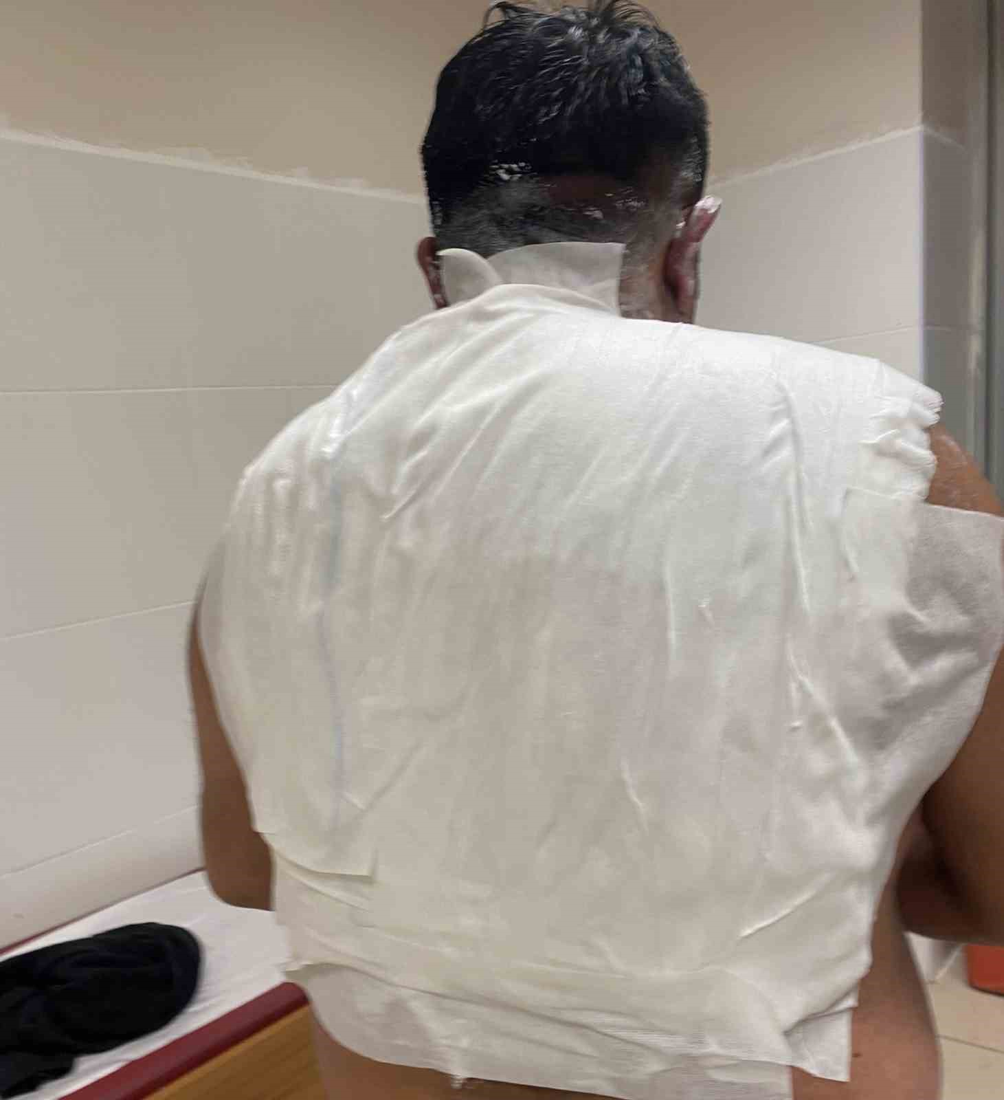 Sıcak su vücuduna döküldü