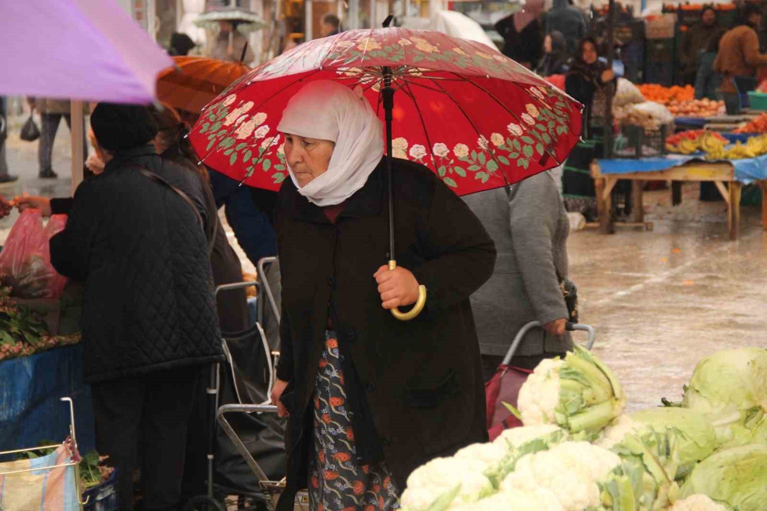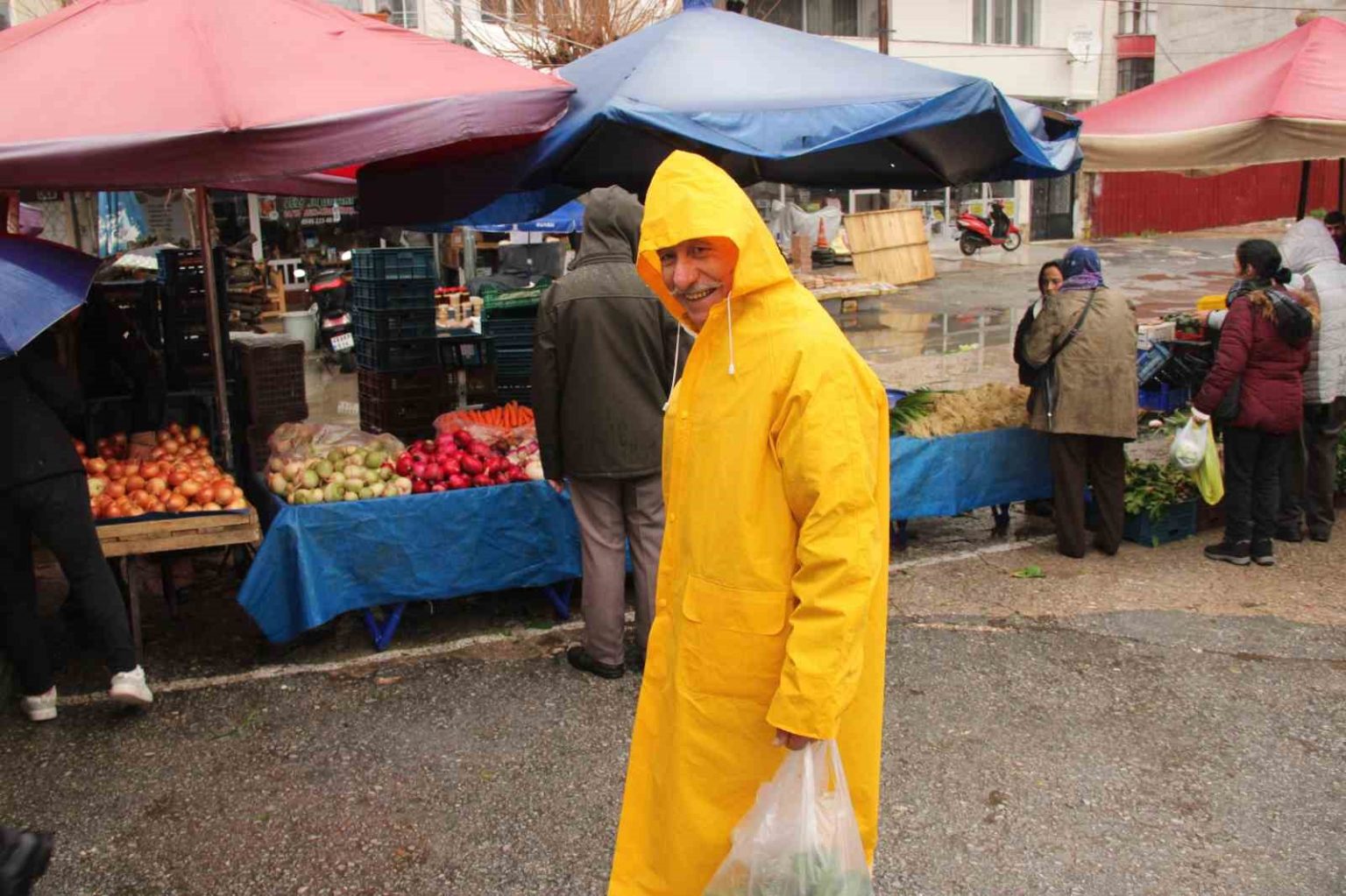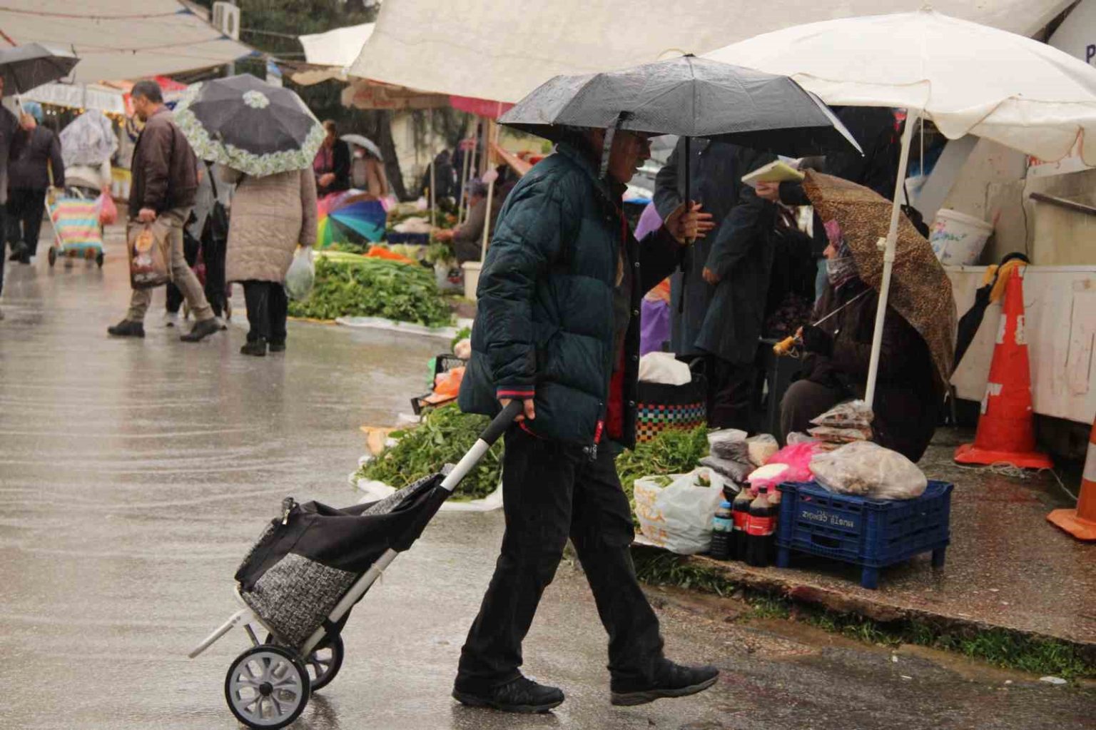 Günlerdir etkisini artırarak sürdüren sağanak yağış, Menteşe Perşembe Pazarı’nda tezgahları seyreltti. Yağmur bazı esnafı durdurdu ancak şemsiyesini alan Muğlalılar, sağanağa aldırmadan pazar alışverişinden vazgeçmedi.