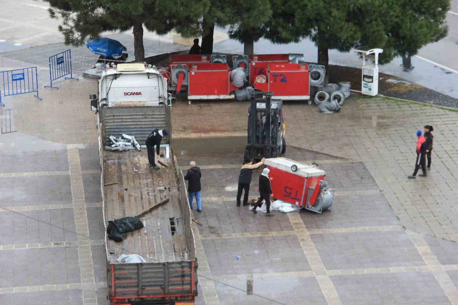 Olay, Cumhuriyet Meydanı’nda gerçekleştirilen yük indirme çalışmaları sırasında meydana geldi. Meydanda kurulması planlanan Ramazan çadırında kullanılmak üzere tırla alana getirilen havalandırma üniteleri için zabıta ekipleri tarafından güvenlik önlemleri alınarak alan bariyerlerle çevrildi. Tırla alana getirilen havalandırma üniteleri forklift yardımıyla indirilmeye başlandı. Tırda bulunan toplam 5 üniteden 4’ü sorunsuz şekilde indirilerek belirlenen noktaya yerleştirildi.