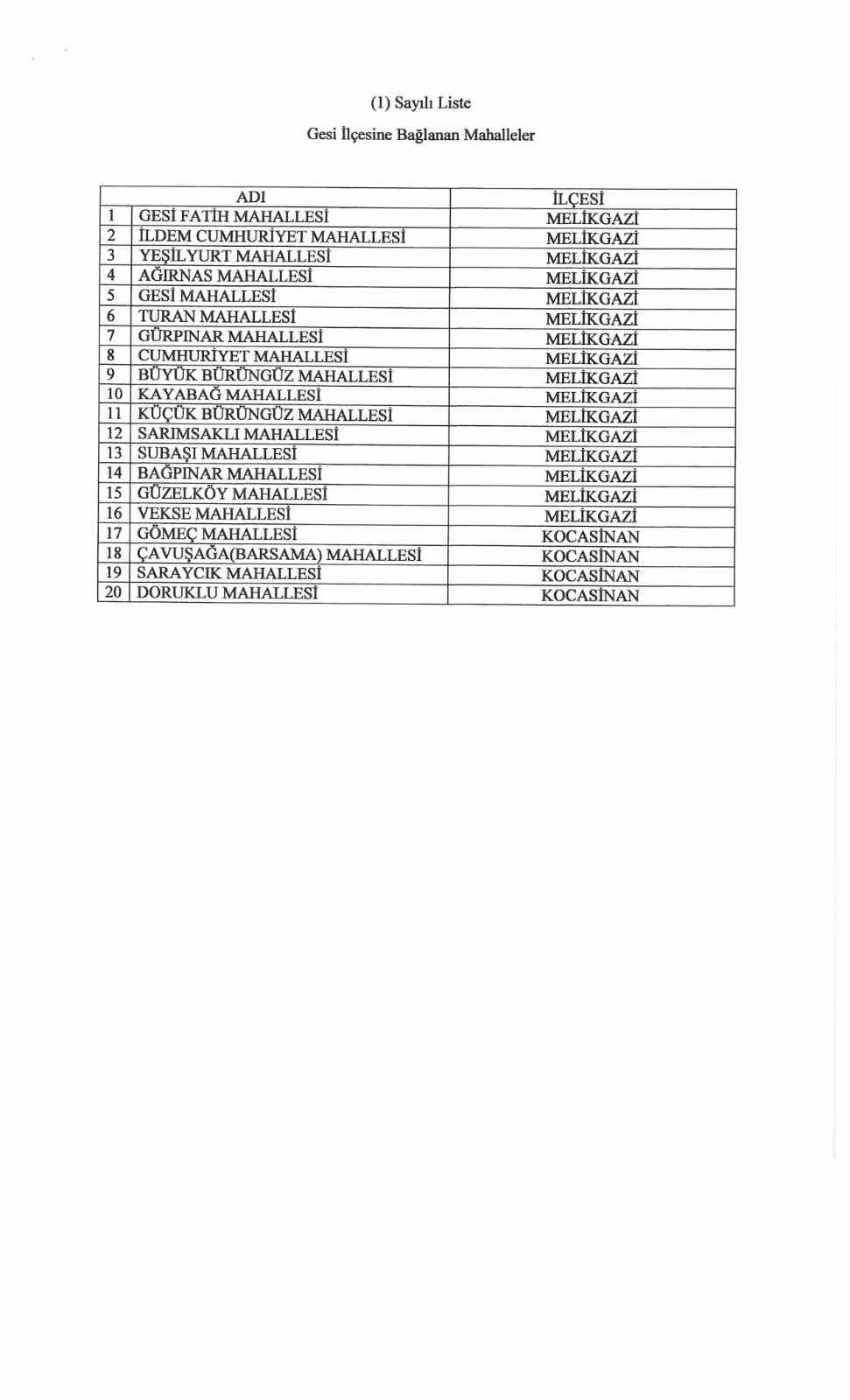 Teklifte, artan nüfus, genişleyen yerleşim alanları ve kamu hizmetlerine erişimde yaşanan yoğunluk gerekçe gösterilerek, söz konusu bölgelerin müstakil birer ilçe haline getirilmesinin hizmetlerin daha etkin ve verimli sunulmasına katkı sağlayacağı ifade edildi. Kayseri’nin tarih boyunca önemli medeniyetlere ev sahipliği yaptığına dikkat çekilen teklifte, özellikle Kültepe gibi merkezlerin şehrin köklü geçmişini ortaya koyduğu vurgulandı. Bu tarihsel birikimin günümüzde artan nüfus ve ekonomik gelişimle birlikte yeni bir idari düzenlemeyi gerekli kıldığı belirtilirken, Gesi ve Erkilet bölgelerinin sahip olduğu potansiyelin altı çizildi. Teklifte Erkilet’in, Hıdırellez Tepesi, Hızır İlyas Köşkü ve Yamula Barajı gibi önemli noktalarıyla dikkat çektiği, aynı zamanda Nuh Naci Yazgan Üniversitesi ile eğitim alanında da gelişim gösterdiği ifade edildi. Gesi’nin ise tarihi dokusu, doğal yapısı ve kültürel değerleriyle öne çıkan bir yerleşim alanı olduğu kaydedildi.