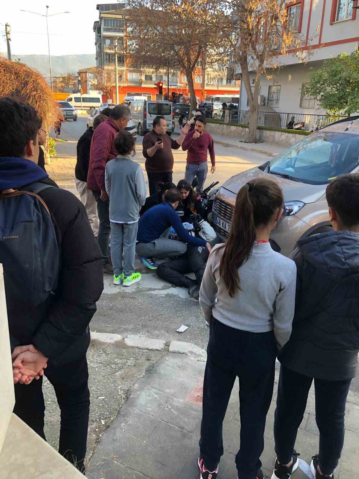 Kaza, Ahmet Çavuş Hayıtlı Mahallesi’ndeki bir kavşakta yaşandı. Edinilen bilgilere göre, 48 KA 734 plakalıticari araç ile 52 AGY 466 plakalı motosiklet kavşakta çarpıştı. Çarpmanın etkisiyle motosiklet devrilirken, sürücüsü ise yola savrularak yaralandı. İhbar üzerine bölgeye sağlık ve polis ekipleri sevk edildi. Yaralanan motosiklet sürücüsüne ilk müdahaleyi vatandaşlar yaptı. Kısa sürede olay yerine gelen sağlık ekipleri yaralı sürücüyü ambulansla hastaneye kaldırdı. Hastanede tedavi altına alınan yaralının sağlık durumun iyi olduğu öğrenildi.