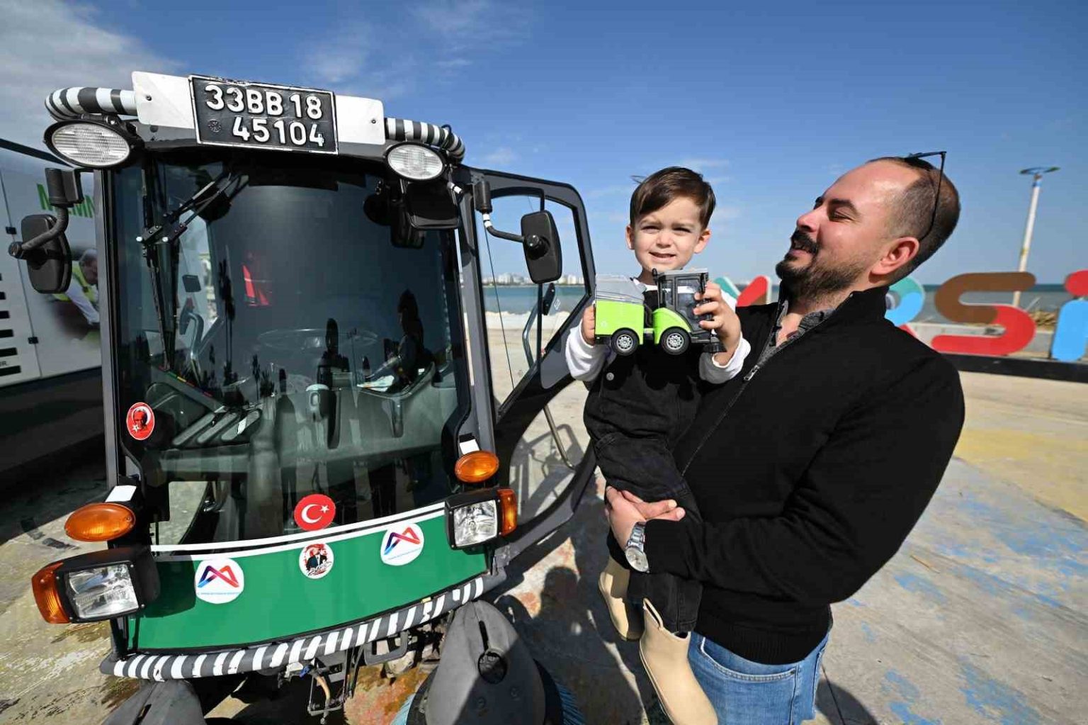 Mersin Büyükşehir Belediyesi, süpürge araçlarına olan sevgisi sosyal medyada paylaşılan 3 yaşındaki Ayaz’ın hayalini gerçeğe dönüştürdü. Minik Ayaz, çok sevdiği yeşil süpürge kamyonuna binerek unutamayacağı bir gün yaşadı.
