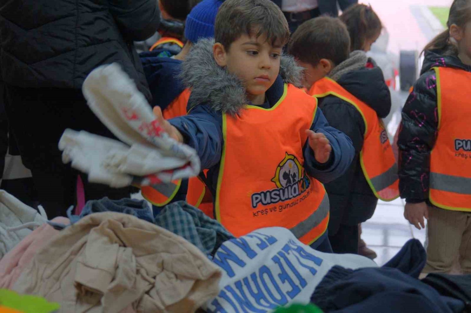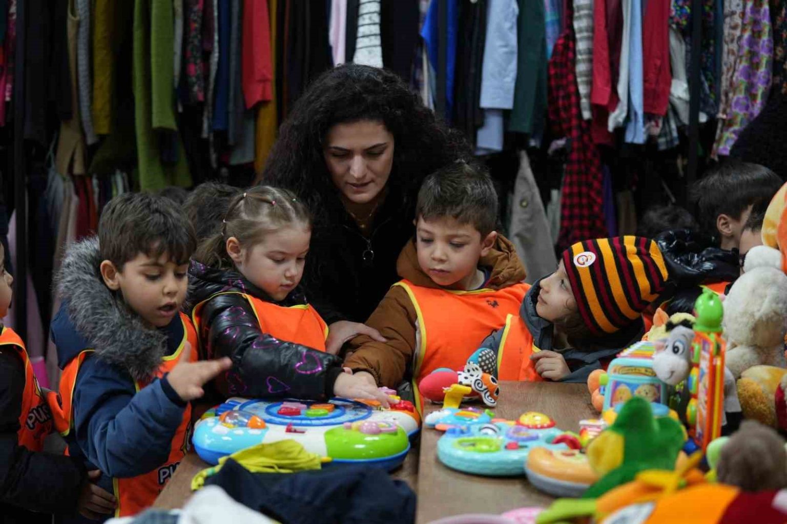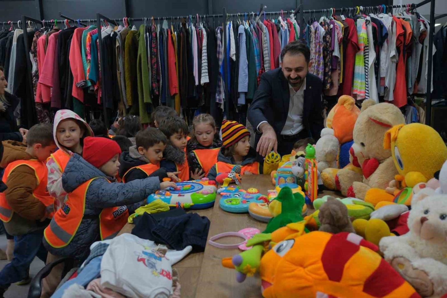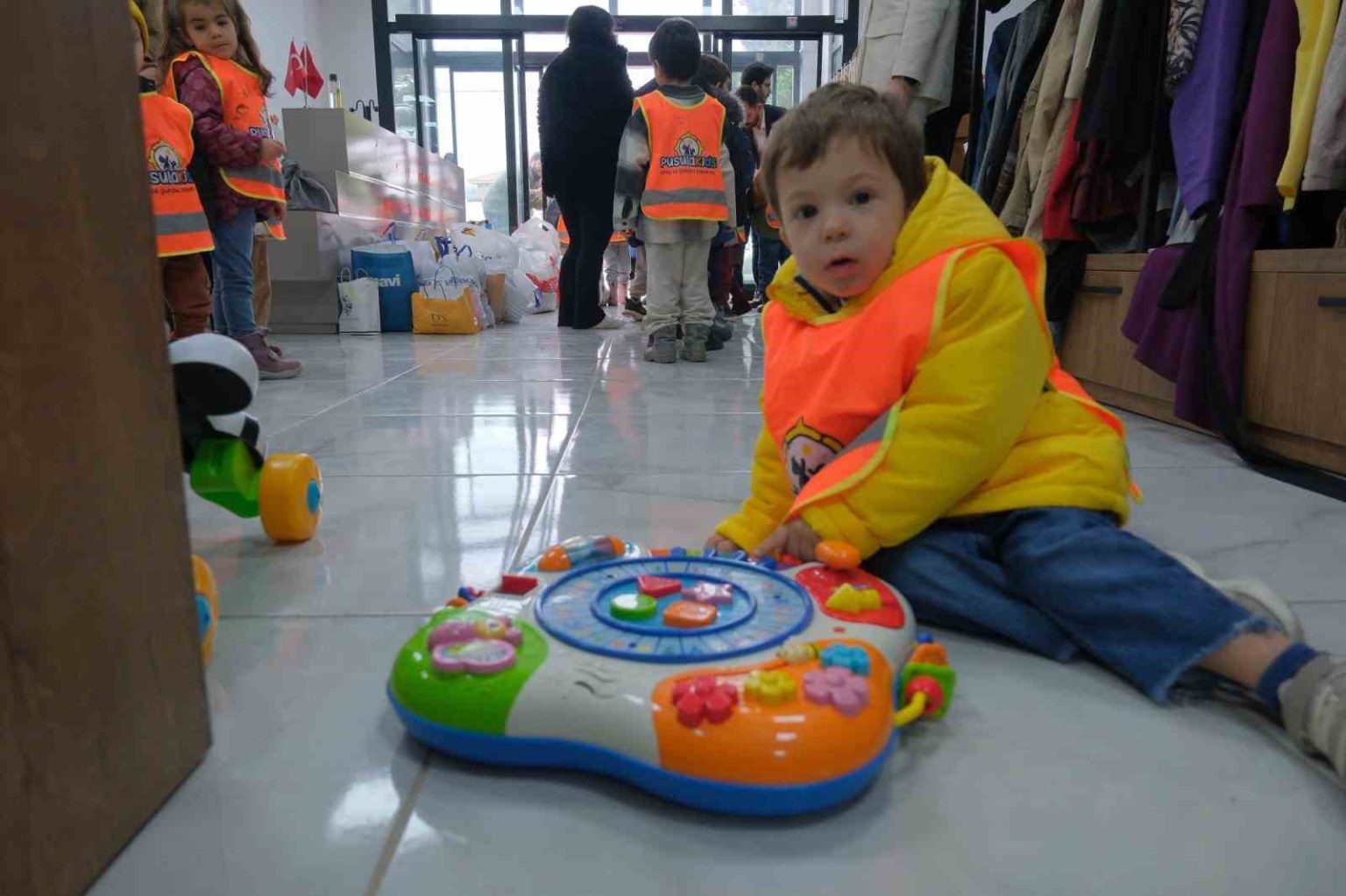 Bolu’da 5 yaşındaki kreş öğrencileri, Bolu Belediyesi Kültür Sanat ve Sosyal İşler Müdürlüğü’ne ait hayır çarşısına kendi yaşıtlarının kullanabileceği kıyafet ve oyuncak desteğinde bulundu.